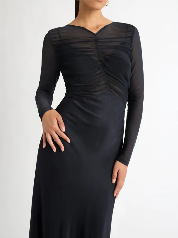 Fall In Love With The Effortless Style Of The Eternity Maxi Dress. Showcasing A Fitted Cut, Power Mesh Bodice With Satin Skirt, Fixed Waist And Detachable Bralette. Pair With Our Serenity Earrings To Complete The Look.