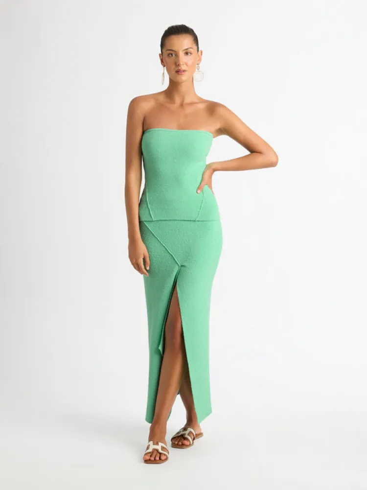 Make A Lasting Impression In The Lyric Knit Top – Showcasing A Fitted Cut, Strapless Neckline And Asymmetric Side Seams. Pair With Our Matching Lyric Knit Skirt To Complete The Look.