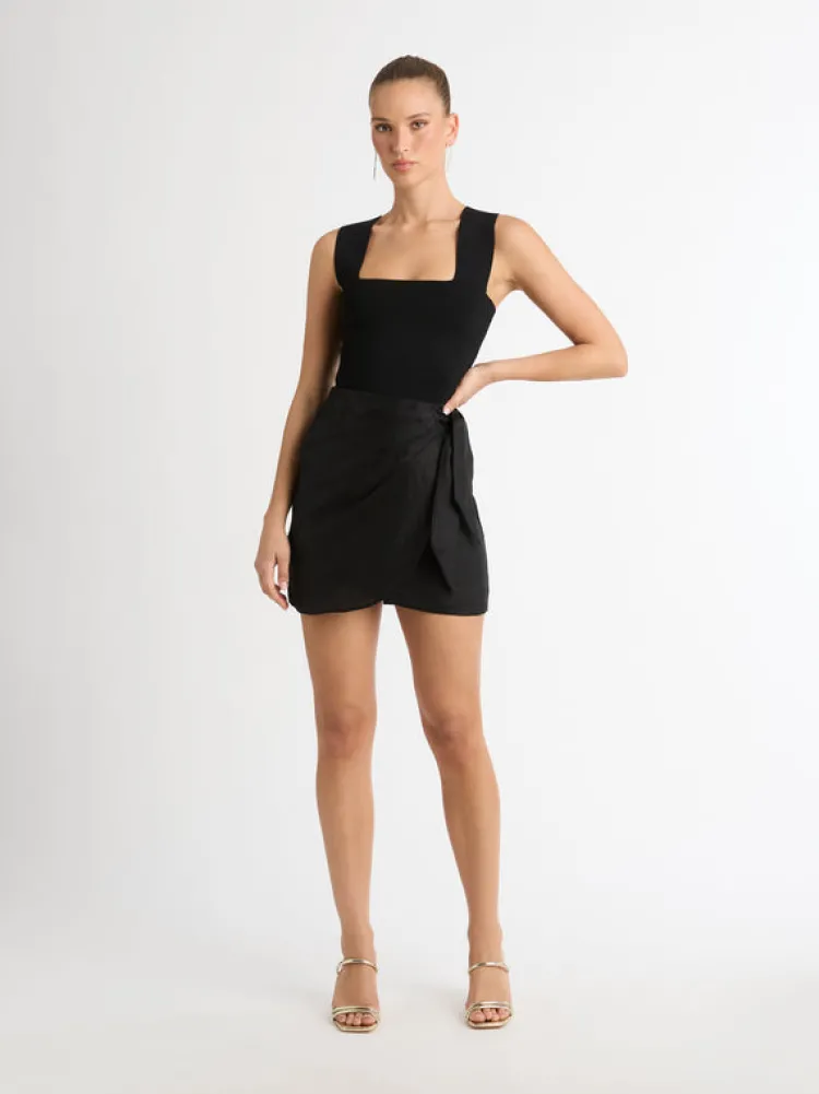Introducing The Leo Linen Skirt, A Summer Staple Piece For Any Wardrobe. Showcasing A Fitted Cut With A Wrap Style Skirt And Side Tie. Pair With Our Amalfi Longline Knit To Complete The Look.
