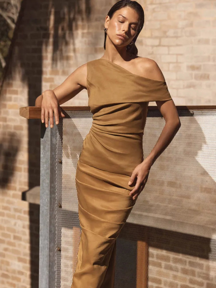 Effortlessly Elevate Your Wardrobe With Autumnal Tones. Introducing Our Casanova Top – Showcasing A Linen Blend Fabrication, Slim Fit, Off The Shoulder Strap, Pleats At Side Seams And Invisible Zip At Side Seam. Pair With Our Matching Casanova Skirt To Complete The Look.