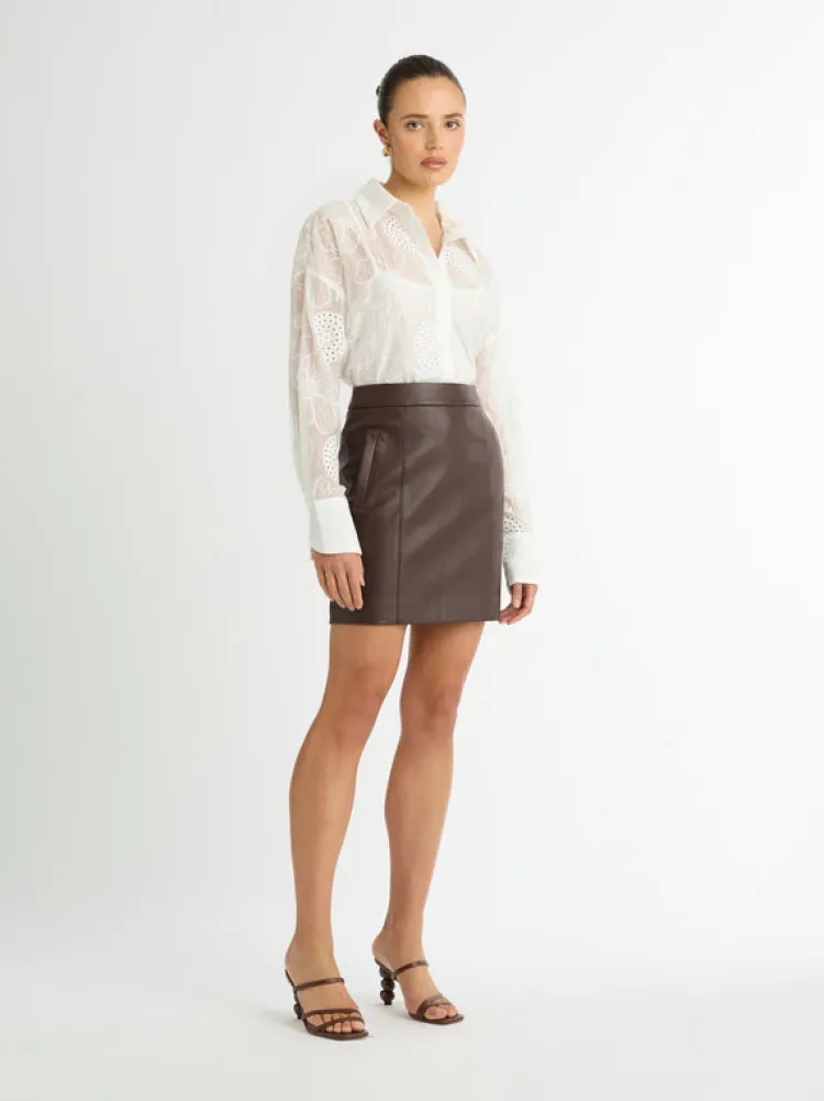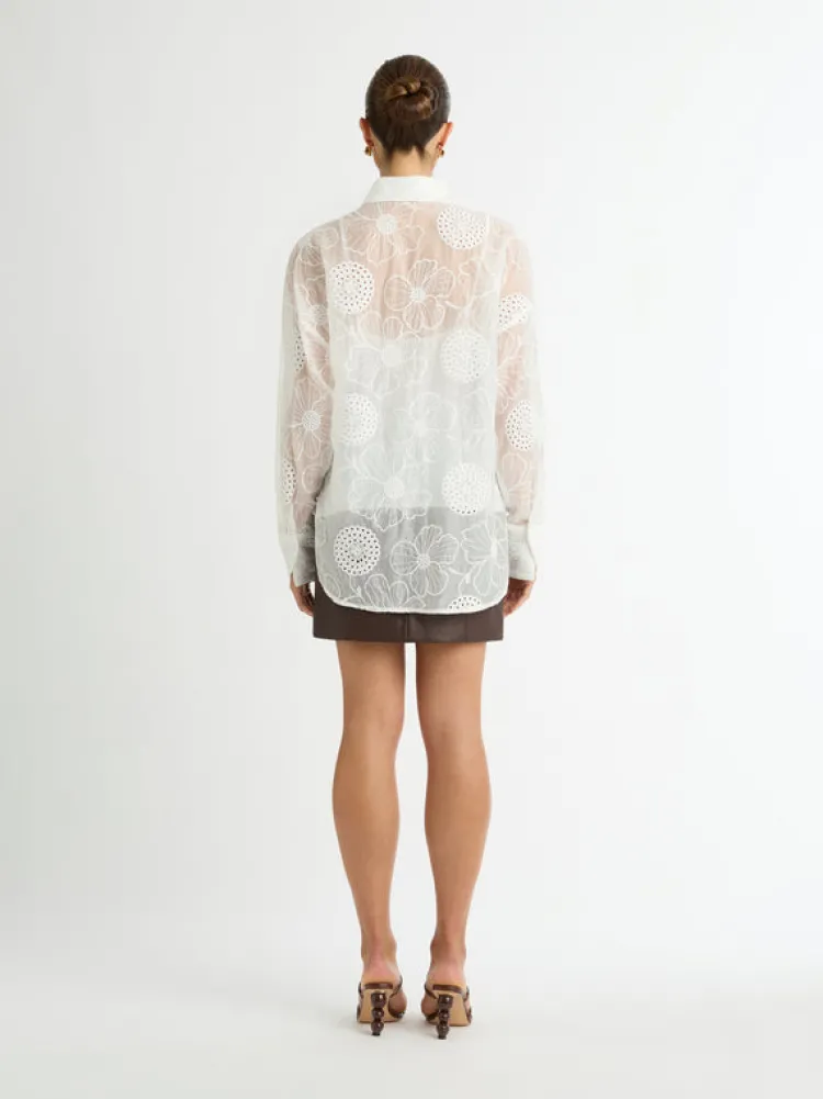 Timeless Styling With A Delicate Vintage Influence – Introducing Our Posey Shirt, Showcasing Cotton Embroidered Fabrication, Relaxed Fit, Singlet Slip And Long Sleeves. Pair Back With Our Rival Skirt To Complete The Look.