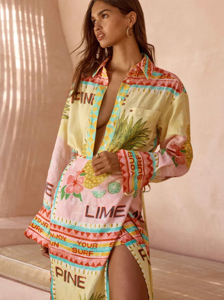 This Summer, We Were Taken Along A Journey With Travelling Artist, Adrianne Dimitrakakis From Atlas. A Summer Romance Blossomed Into An Exclusive Collaboration, Atlas X Sheike. A Celebration Of Travel, The Tropics And All Things Found Along The Way. Together, We Crafted A Four-Piece Capsule Adorned In Atlas’ Pine Lime Artwork. Inspired By Fruit Stands Adrianne Has Crossed In Her Travels, The Original Artwork Was Created Exclusively For Our Limited-Edition Collection.