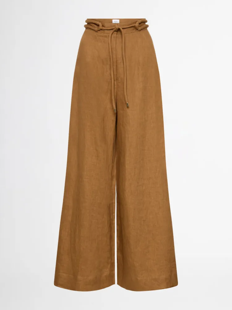 A Staple Piece To Bring You Into The New Season. Introducing The Mia Linen Pant- Showcasing A Relaxed Cut, Wide Leg Pant With Fixed Waist And SElf Fabric Cord Belt Tie With Metal Toggle Ends. Pair With Our Mia Linen Top To Complete The Look.