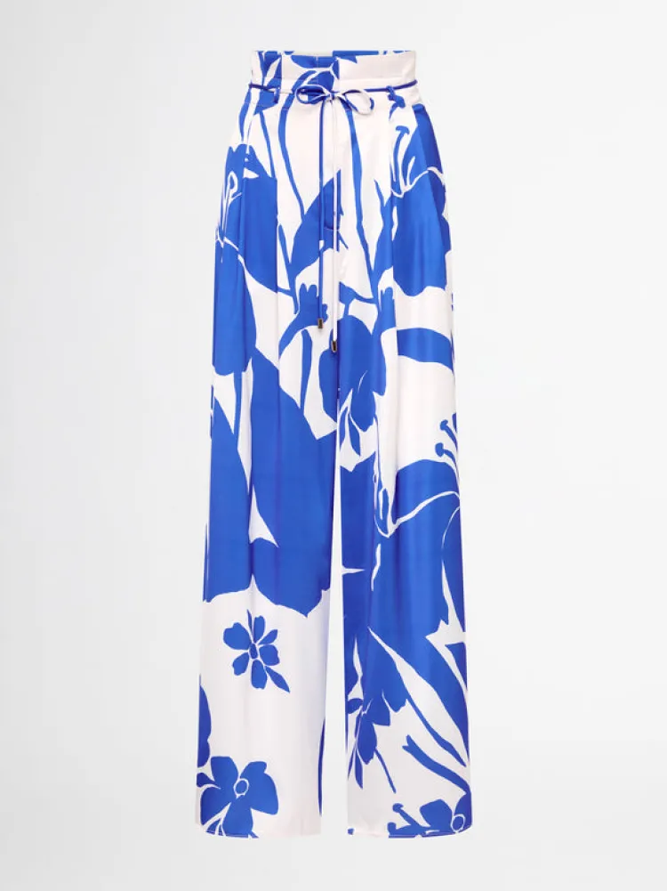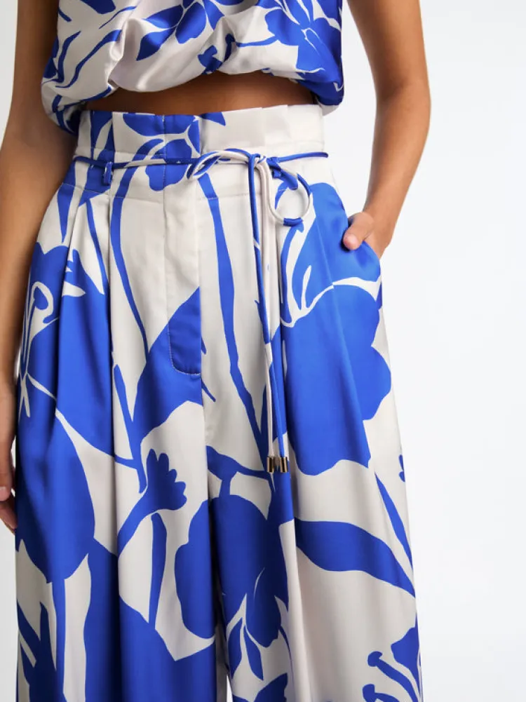 Blooming Blue Florals Meet Lux Satin Finishes. Introducing The San Antonio Pant – Showcasing A Paper Bag Fixed Waist, Se…