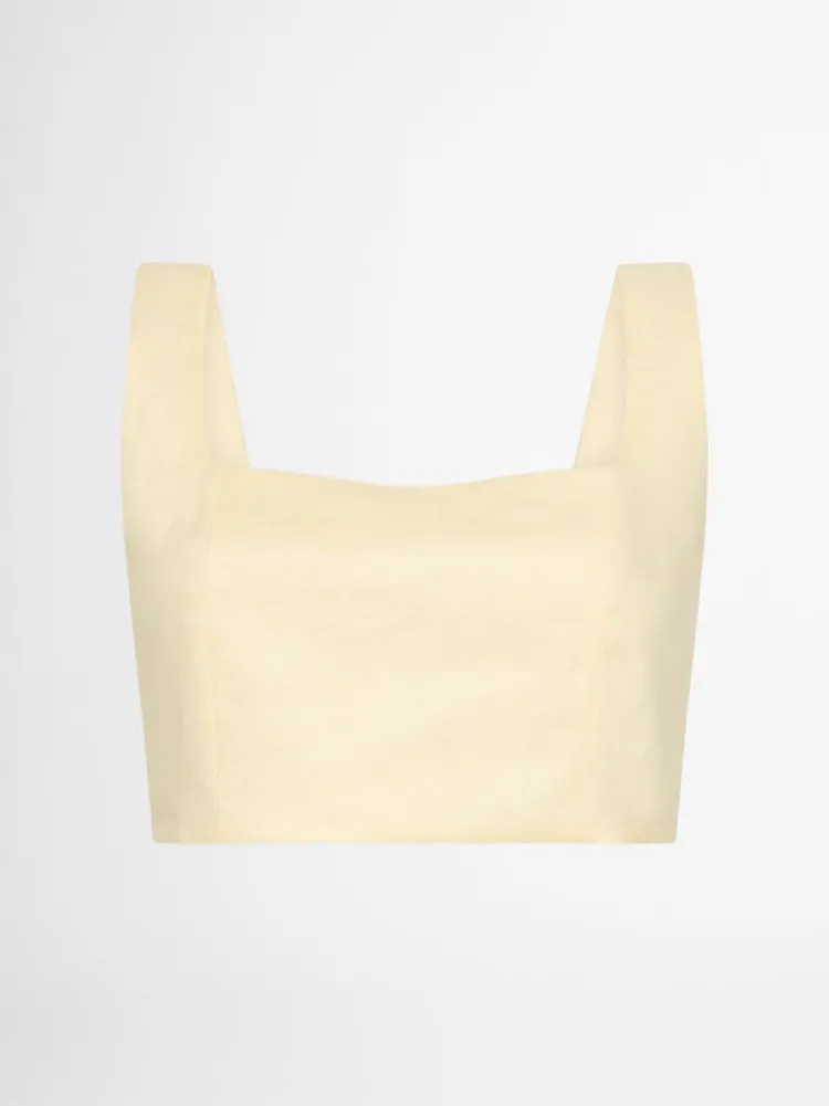 Minimalist Styling And Soft Buttery Tones Make Up The Effortless Lexi Crop Top. Showcasing A Decadent Linen Fabrication …