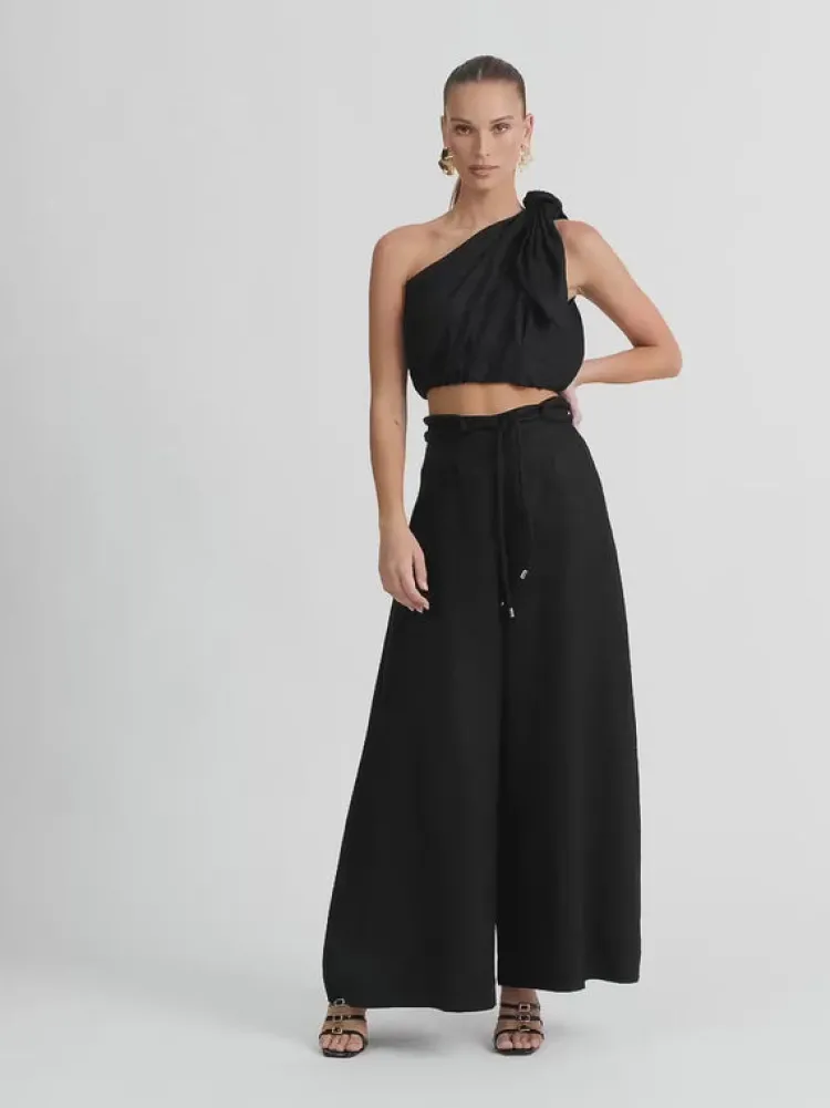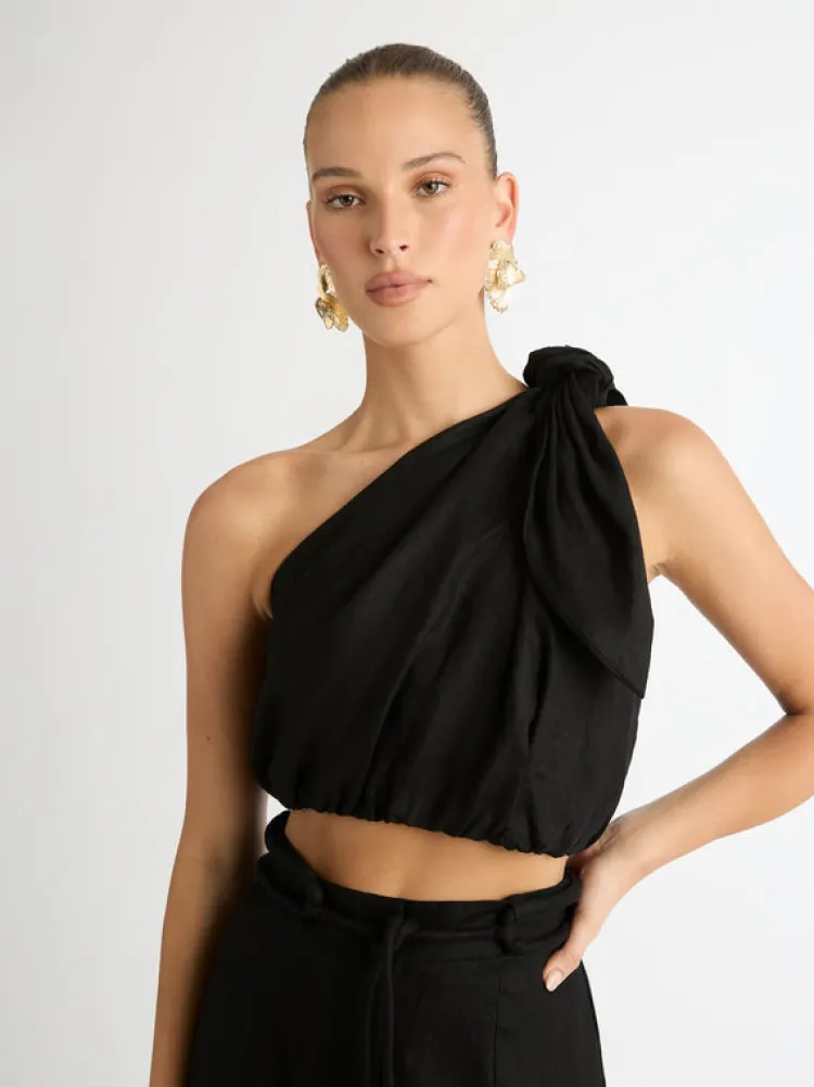 A Staple Piece To Bring You Into The New Season. Introducing The Mia Linen Top – Showcasing A Relaxed Fit, OFf The Shoulder Strap With Self Fabric Ties And Elasticated Hem. Pair With Our Matching Mia Linen Pant And Lotus Earrings To Complete The Look.
