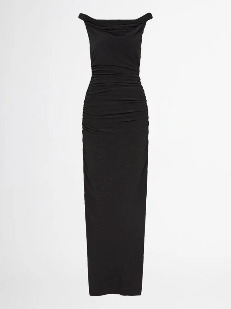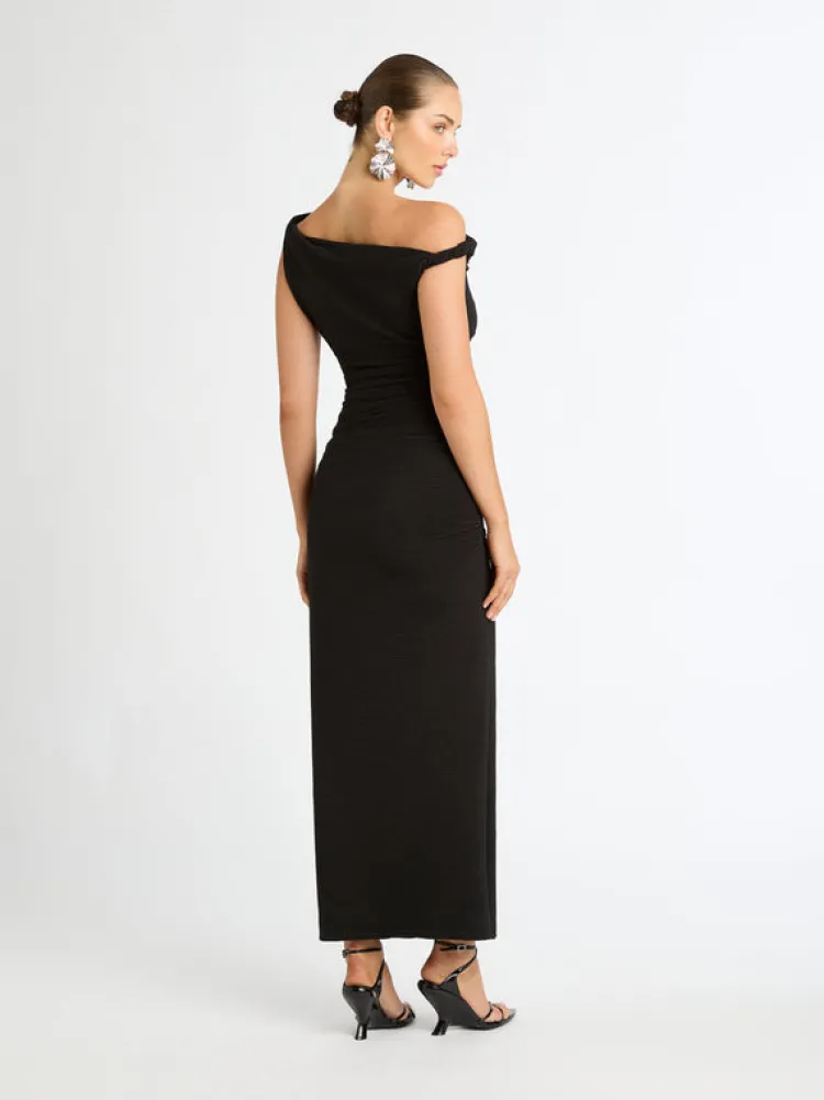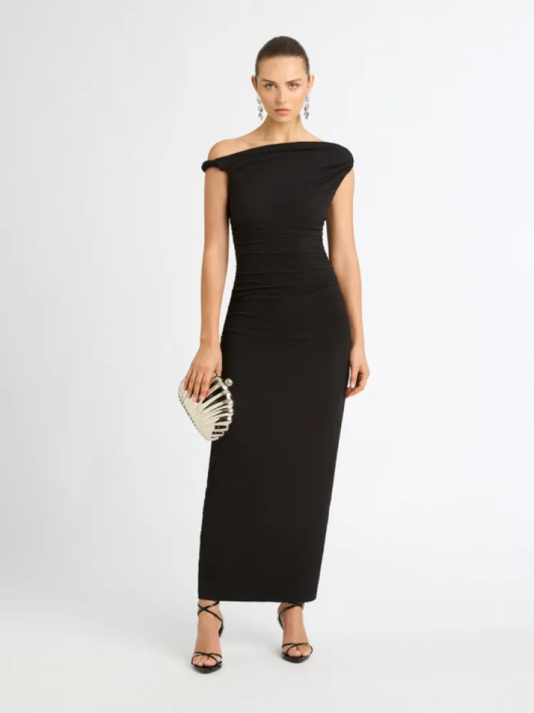 Classic Beauty Redefined. Introducing The Athena Dress – Showcasing A Slim Fit Cut, Asymmetric Neckline With Twisted Strap Detailing And Rouching At The Waist. Pair With Our Marigold Earrings To Complete The Look.