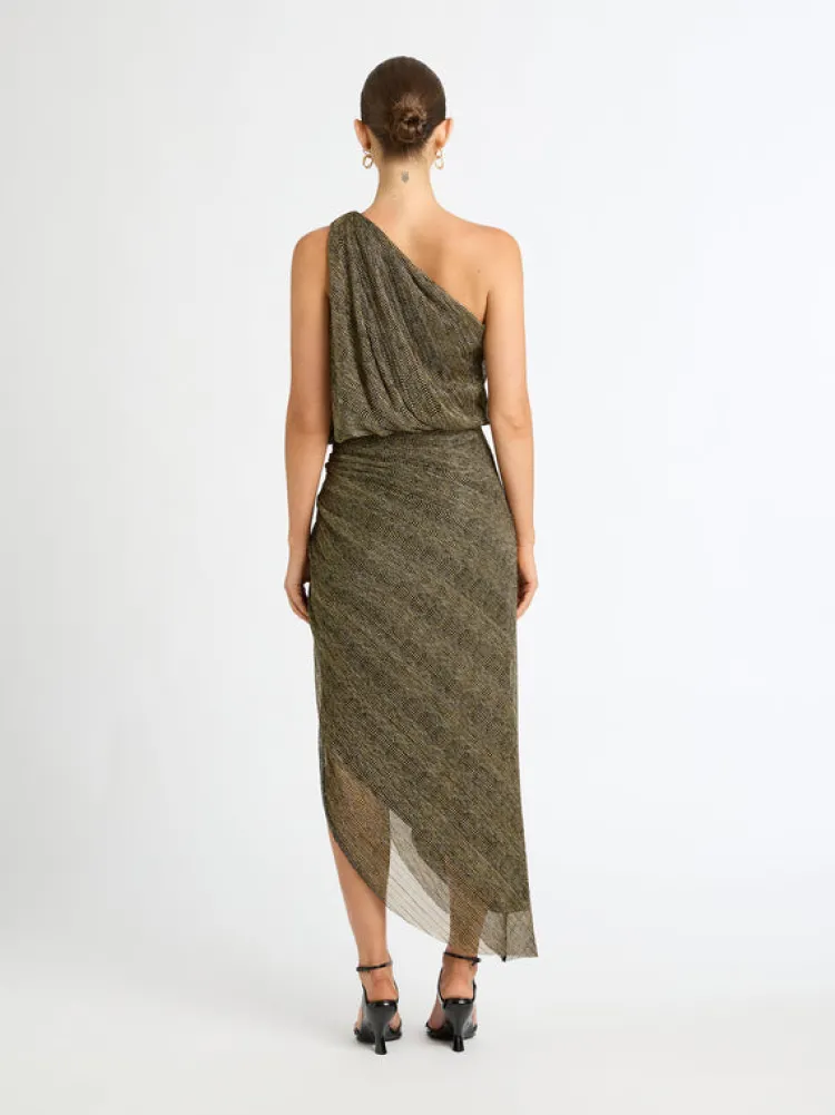 Designed To Make You Feel Like A Goddess – Introducing The Eclipse Maxi Dress – A Celestial Fusion Of Timeless Grecian Elegance And Contemporary Allure. Featuring A Textured Tulle Foiled Fabrication, Fitted Styling, One Shoulder Strap, Gathered Elasticated Waistband, Draped Bodice And Fully Lined. Pair Back With Our Nicola Drop Earrings To Complete The Look.