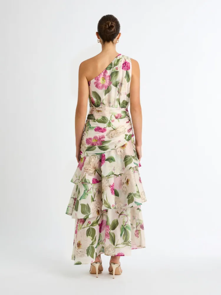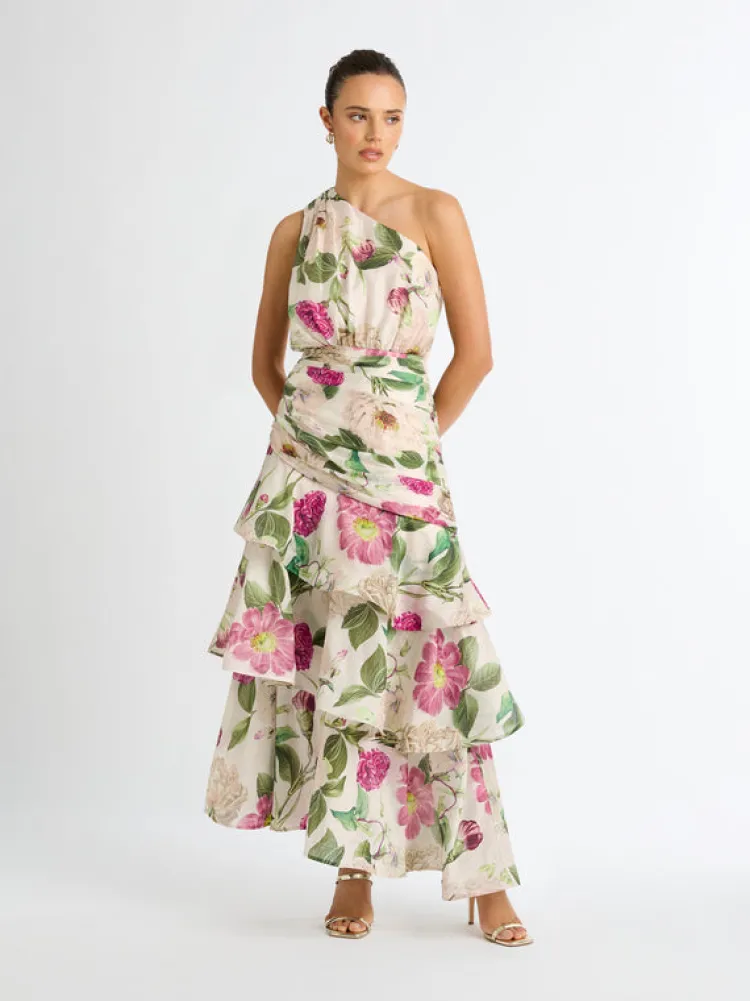 Stand Out At Your Next Event In The Print Of The Season. Introducing The Emilia Tiered Dress, Showcasing A Fitted Cut, Ruffled Layered Skirt, Gathering Detail On Bodice, One Shoulder Styling And Maxi Skirt Length. Pair With Our Lilian Earrings To Complete The Look.