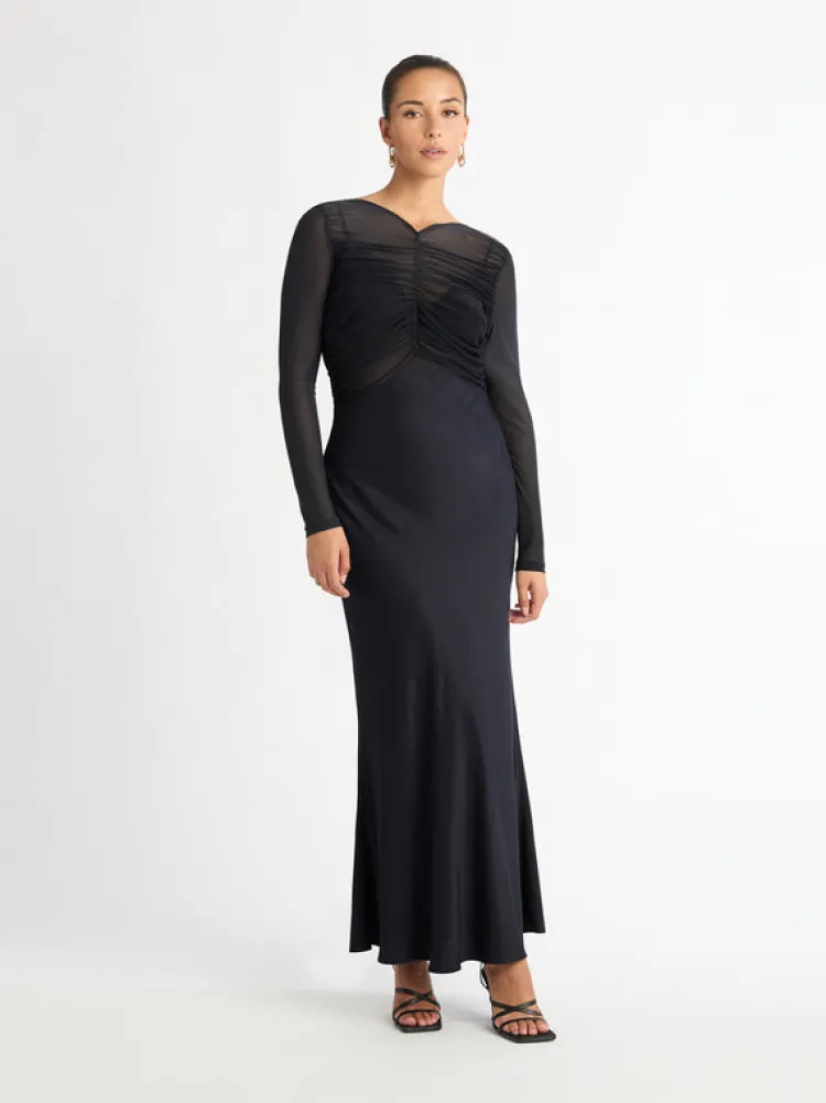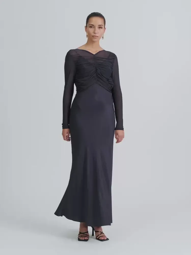 Fall In Love With The Effortless Style Of The Eternity Maxi Dress. Showcasing A Fitted Cut, Power Mesh Bodice With Satin Skirt, Fixed Waist And Detachable Bralette. Pair With Our Serenity Earrings To Complete The Look.