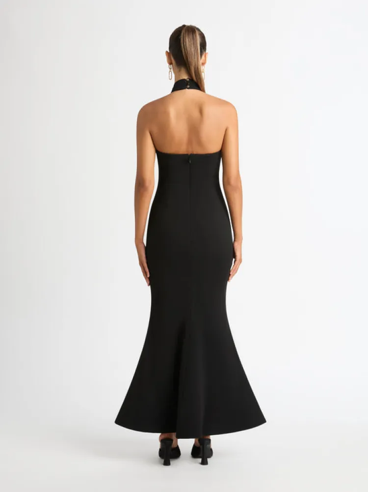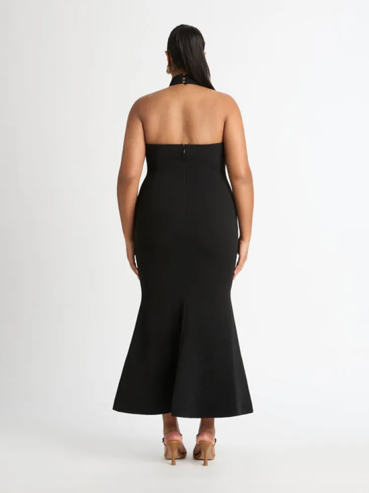 Make An Unforgettable Entrance In The Decidedly Romantic Fortune Maxi Dress. Showcasing A Fitted Cut, Halter Neckline And Mermaid Skirt. Pair With Our Halo Earrings To Complete The Look.