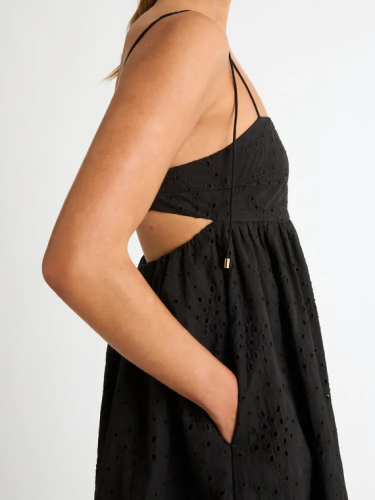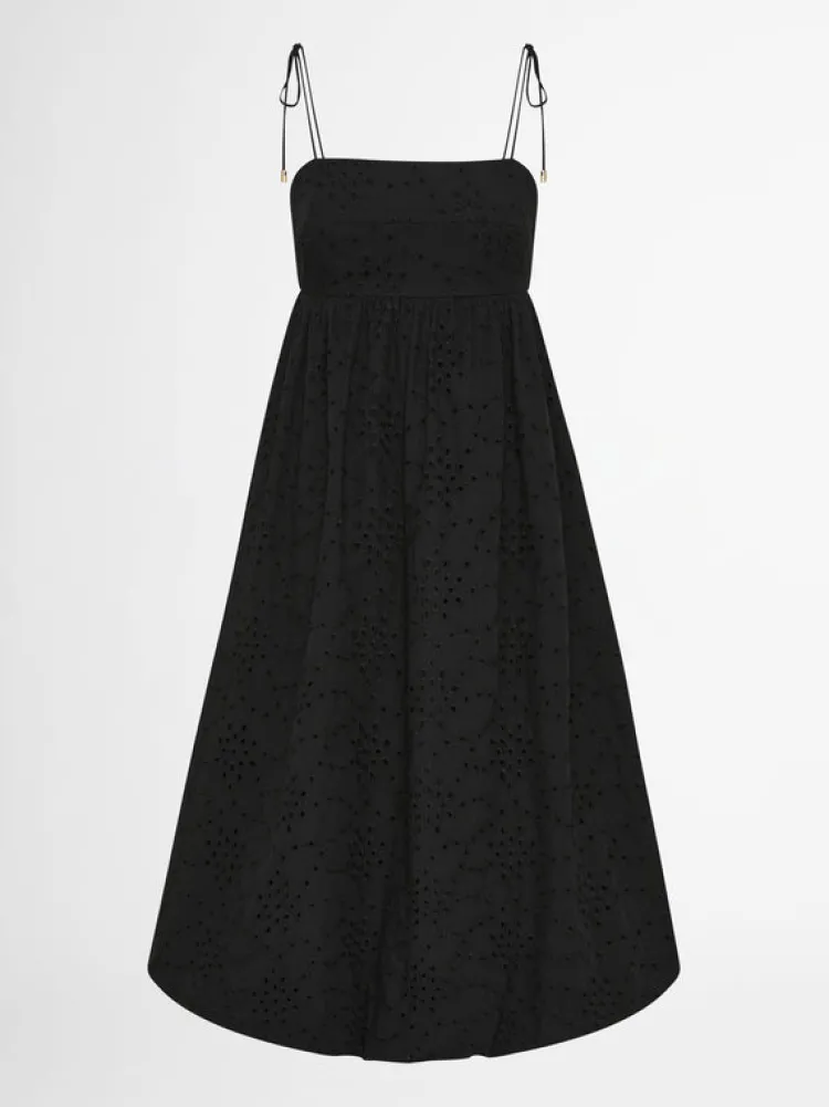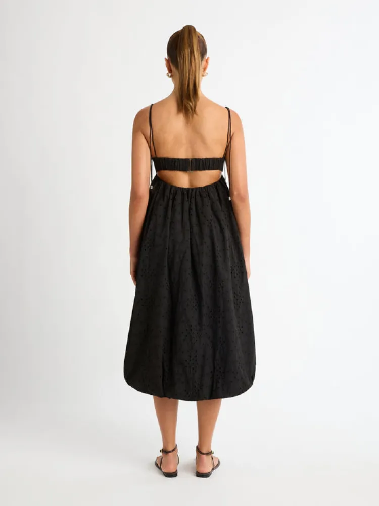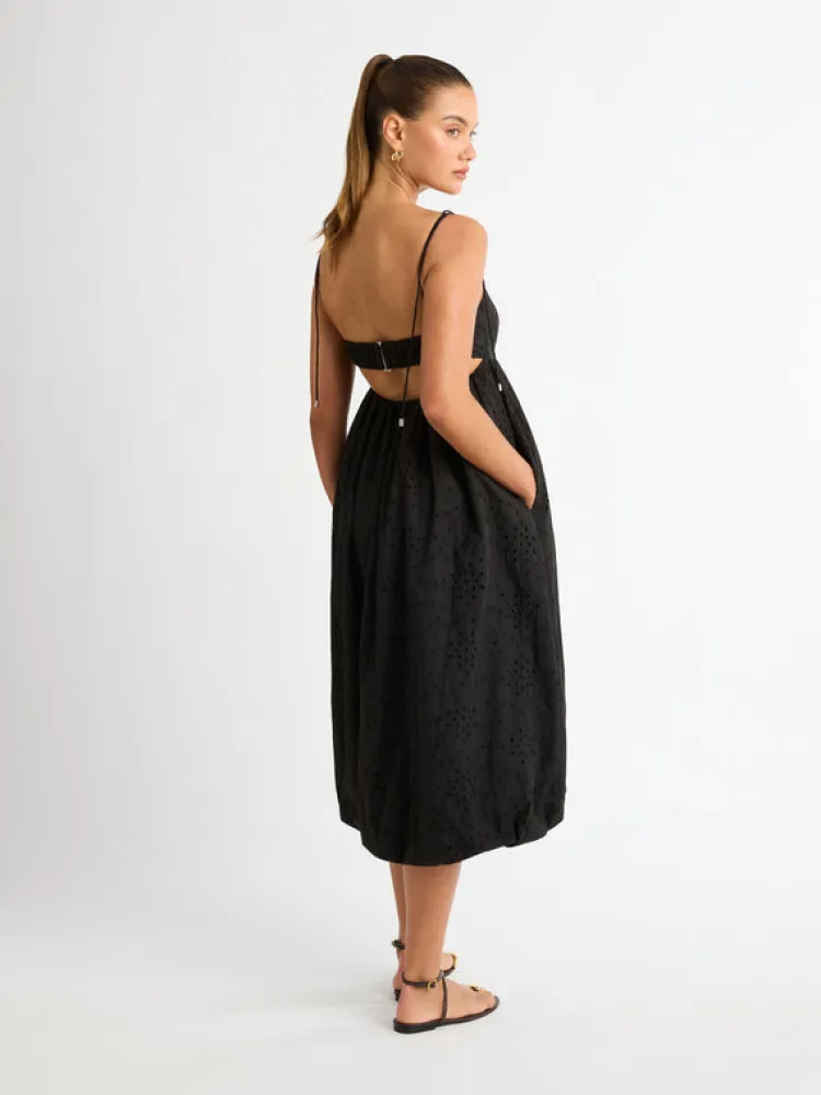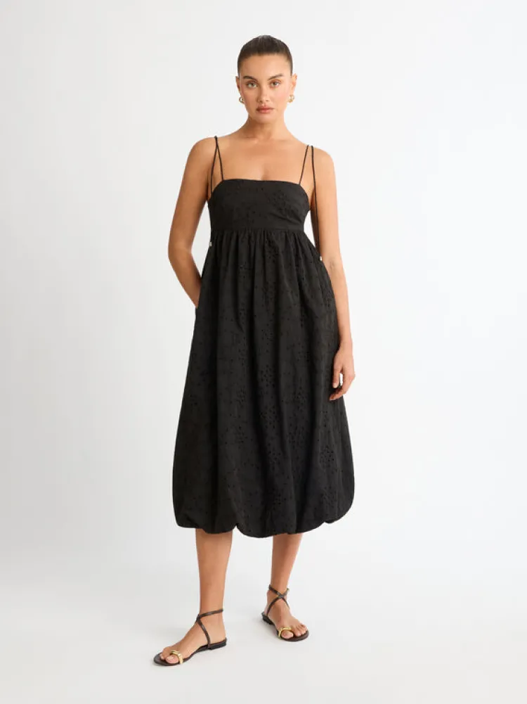 Introducing The Freedom Midi Dress – A Celebration Of Style, Comfort And Individuality. Showcasing A Relaxed Fit, Tie Shoulder Straps, Elasticated Back Strap, Side Seam Pockets And Bubble Style Midi Skirt. Pair With Our Grazia Stud Earrings To Complete The Look.