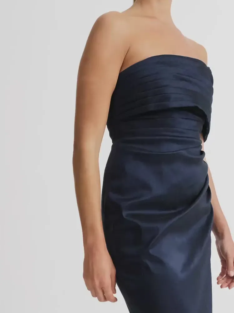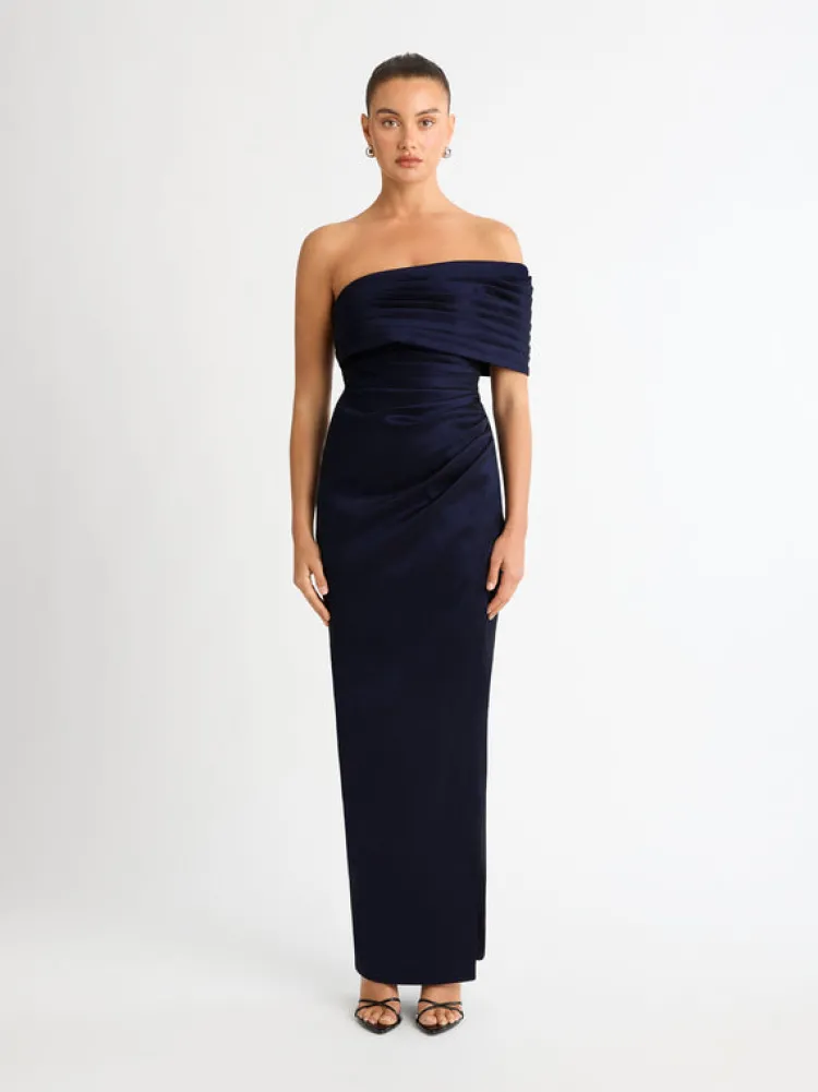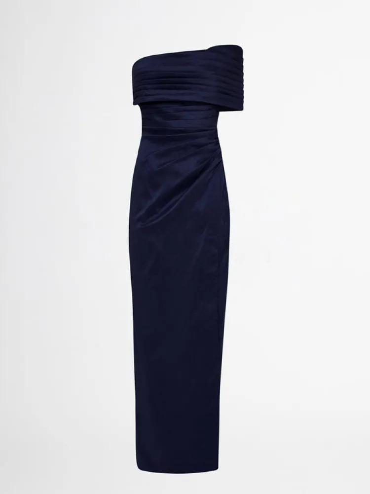 Designed To Honour The Shape Of The Female Form, This Piece Has Been Carefully Constructed To Have An Innate Movement To It; Perfectly Draped And Wrapped To Fit. Introducing The Giselle Gown – Showcasing A Fitted Styling, Stretch Taffeta Fabrication, One Shoulder Strap, Pleating Throughout Dress And Invisible Center Back Zipper. Pair With Our Sphere Stud Earrings To Complete The Look.