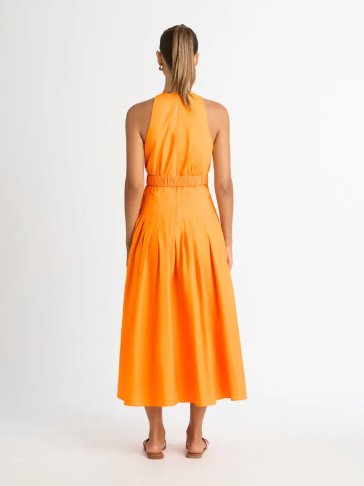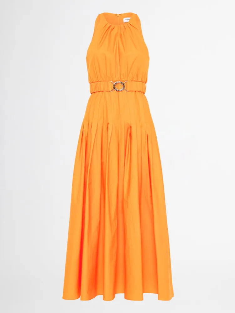 Refresh Your Wardrobe With The Bold Montana Maxi Dress – Crafted From 100% Cotton This Maxi Dress Showcases A High Neckline With Ruching, Inverted Pleats Across Skirt, Gathered Detailing At Waist And An Elasticated Belt. Pair With Our Halo Earrings To Complete The Look.