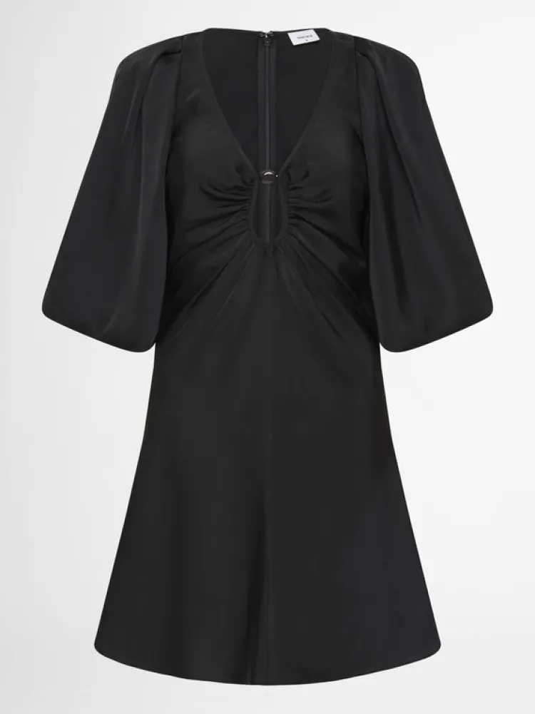 The Party Season Essential – Introducing The Petra Mini Dress. Showcasing Satin Woven Fabrication, Mini Skirt Length, Balloon Sleeves And Cut Out At The Bust With Bead Detailing. Pair With Our Natascha Earrings To Complete The Look.