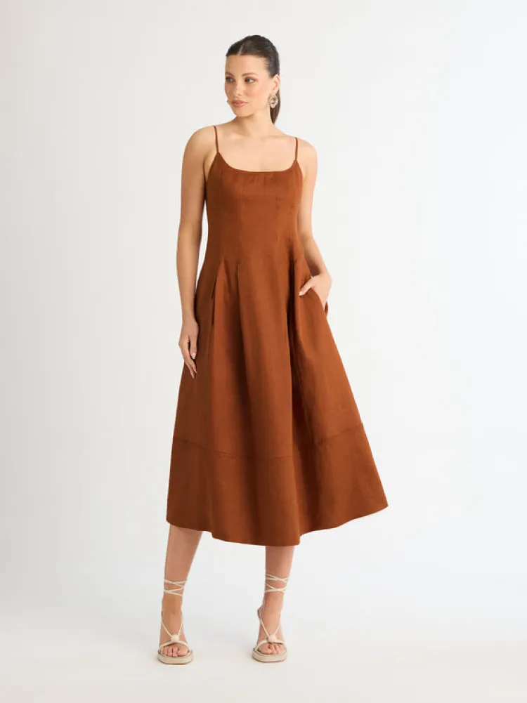 Introducing Our Pisco Midi Dress – A Perfect Blend Of Timeless Elegance And Contemporary Style. Featuring 100% Linen Fabrication, Inverted Pleats And Relaxed Styling Making It The Ideal On Rotation Piece. Pair With Our Halo Earrings To Complete The Look.