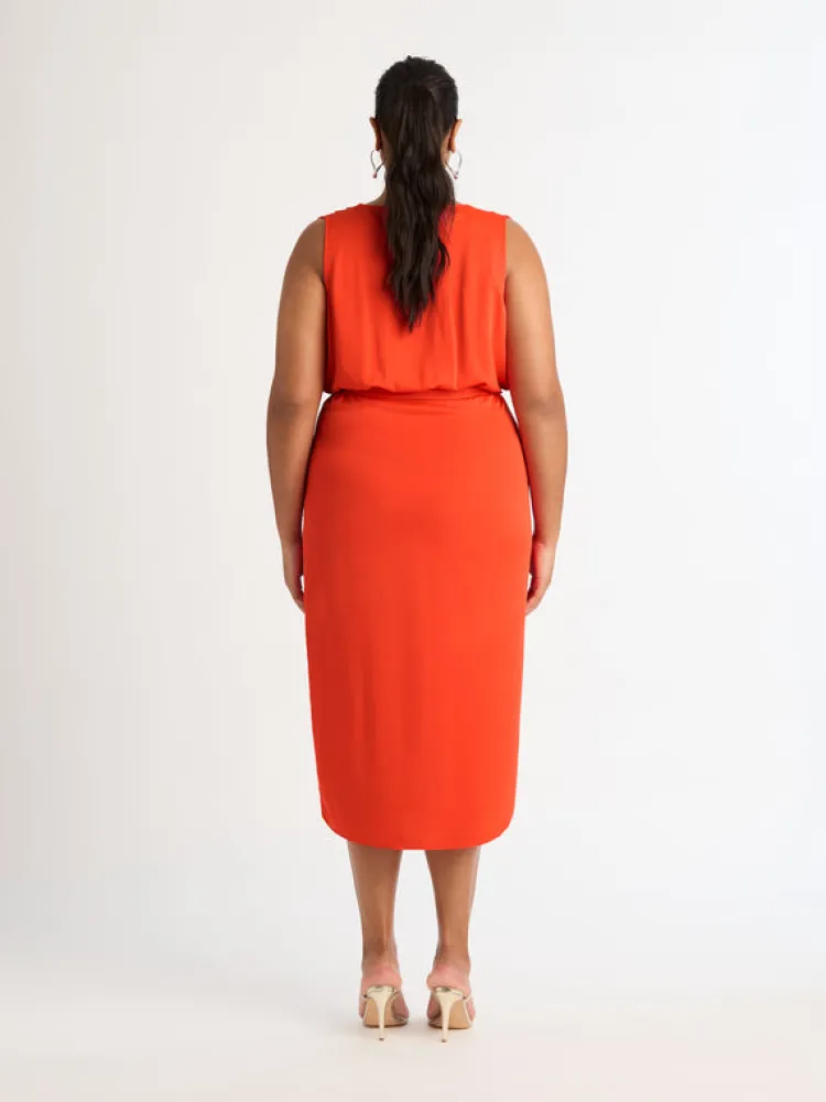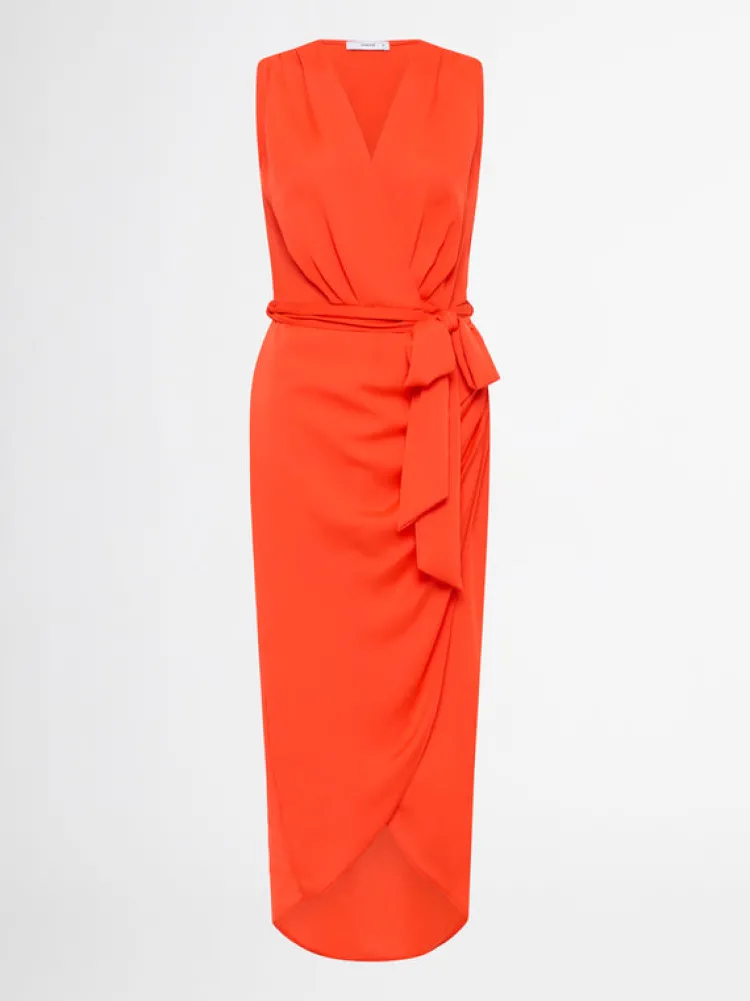 Indulgent Bold Hues And Draping Satin Silhouettes Make Up The Vibrant Saskia Midi Dress. Showcasing A Cross Over V Neckline, Cross Over Front Skirt With Pleats At Waist And Side Hip, And Elasticated Waist. Pair With Our Berkley Earrings To Complete The Look.