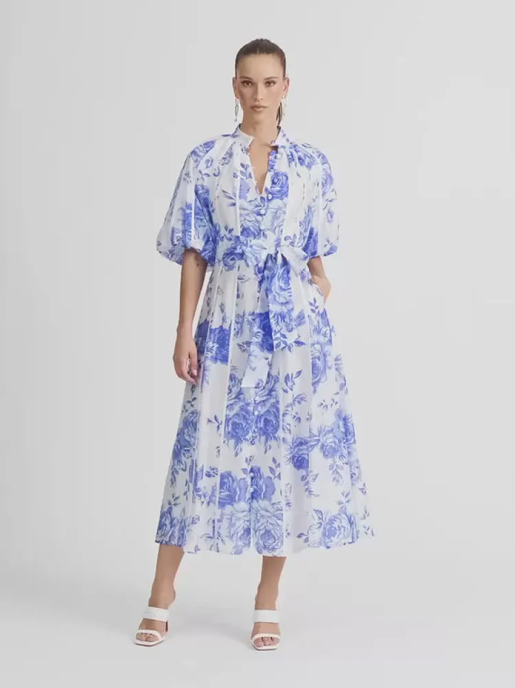 Timeless Styling With A Delicate Vintage Influence – Introducing The Linen Blend Spring Romance Maxi Dress, Showcasing A Relaxed Fit, Fixed Waist With Self Fabric Sash Belt, Raglan Balloon Sleeves And Side Seam Pockets. Pair With Our Cindy Earrings To Complete The Look.