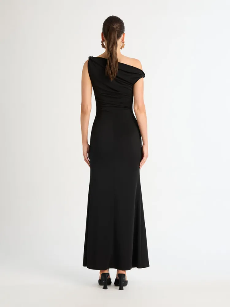 Timeless Beauty Redefined. Introducing The Stella Maxi Dress – Showcasing A Slim Fit Cut, Asymmetric Neckline With Off The Shoulder Cut, Twisted Strap Detailing And Side Skirt Split. Pair With Our Mila Earrings To Complete The Look.
