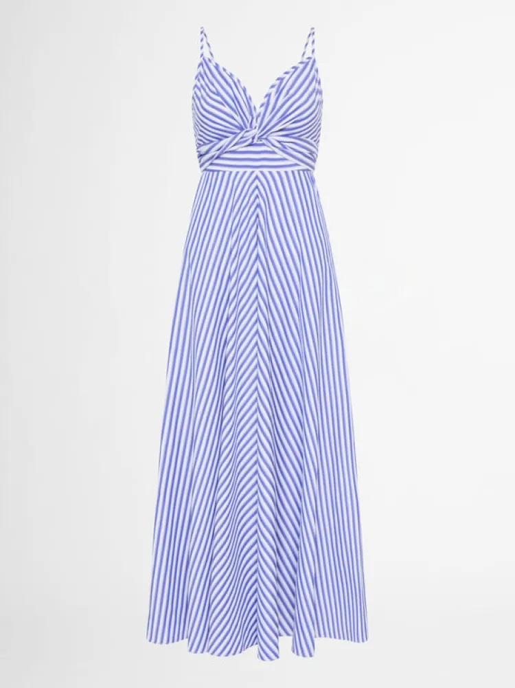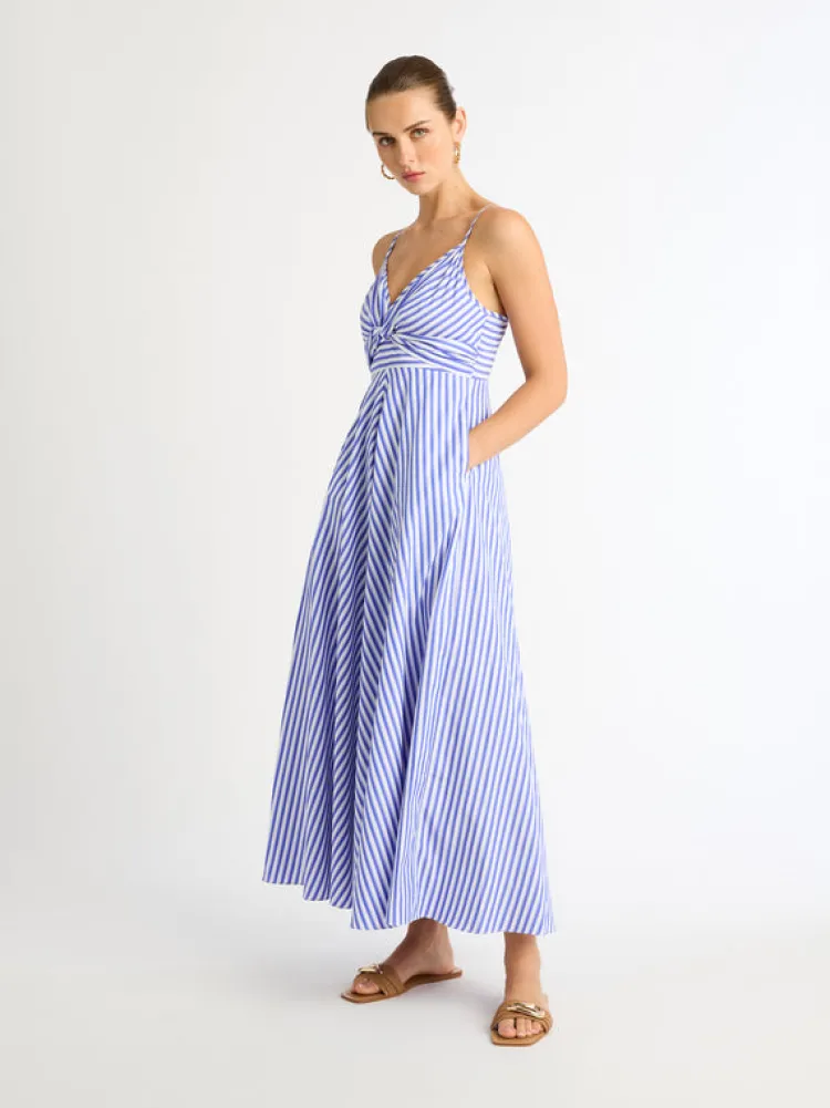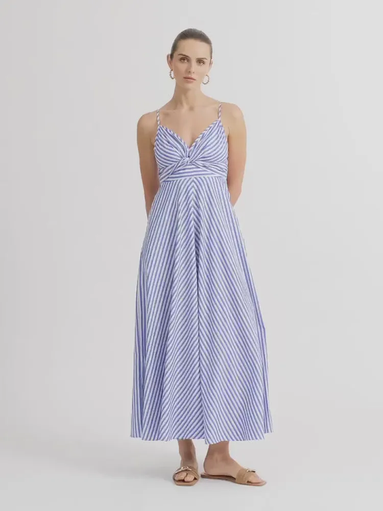 Step Out This Summer The Stevie Midi Dress! Featuring Twist Front Detailing At The Bust, An A-Line Silhouette That Can Transform From An Elevated Casual Look To A Show-Stopping Statement Dress. Style With Our Eliza Hoop Earrings To Complete The Look!