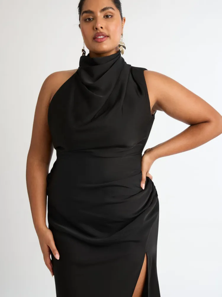Elegance And Timeless Beauty Infused With A Modern Twist. Introducing The Venus Maxi Dress – Showcasing A Slim Fit Cut, Low Back With Draping Self Fabric Sash And High Neckline. Pair With Our Tropics Earrings To Complete The Look.