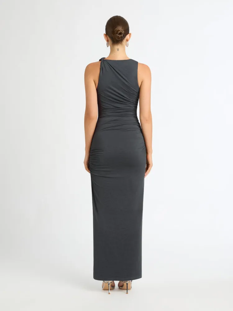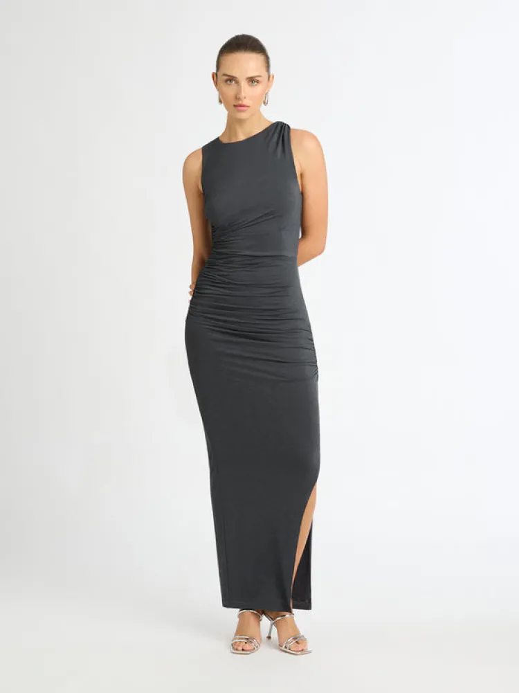 A Twist On A Classic, For The Contemporary Woman. Introducing The Willa Midi Dress – Showcasing A Stretch Jersey Fabrication, High Neckline, Midi Length Skirt, Twist Detailing On Left Shoulder, Ruching At Side Bodice And Side Skirt, Fully Lined And Fitted Styling. Pair With Our Skyscraper Earrings To Complete The Look.