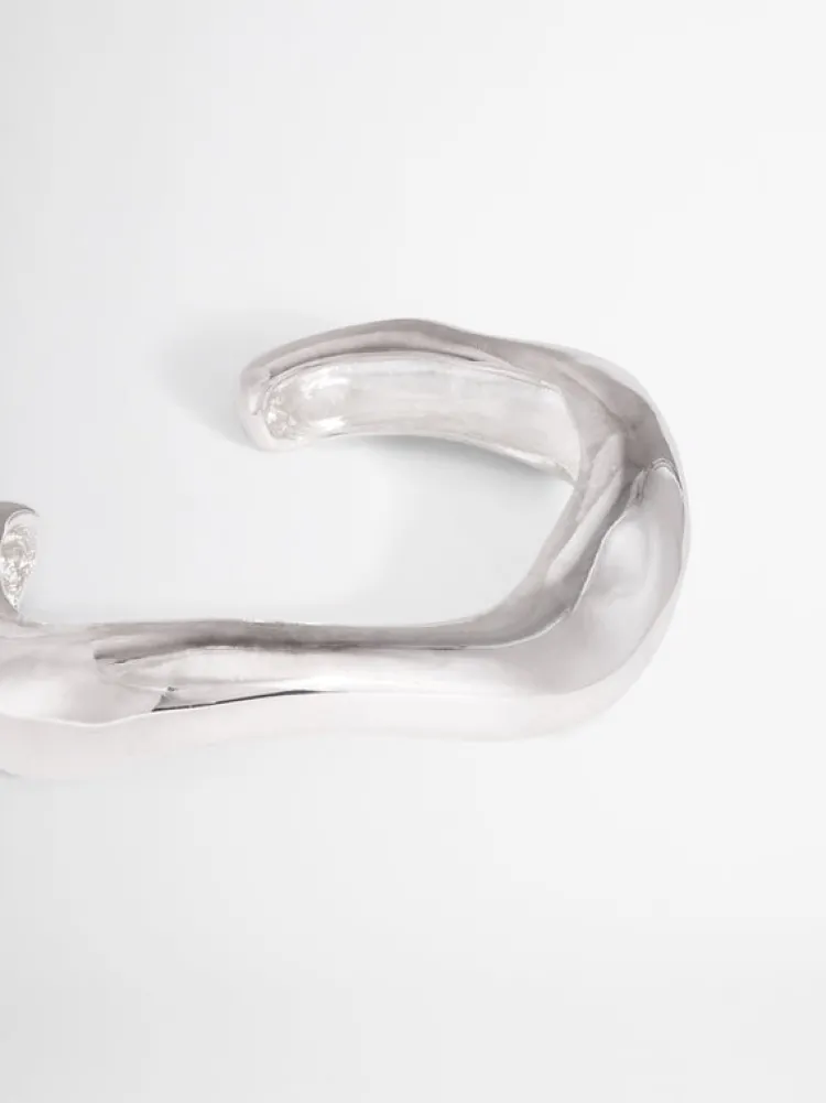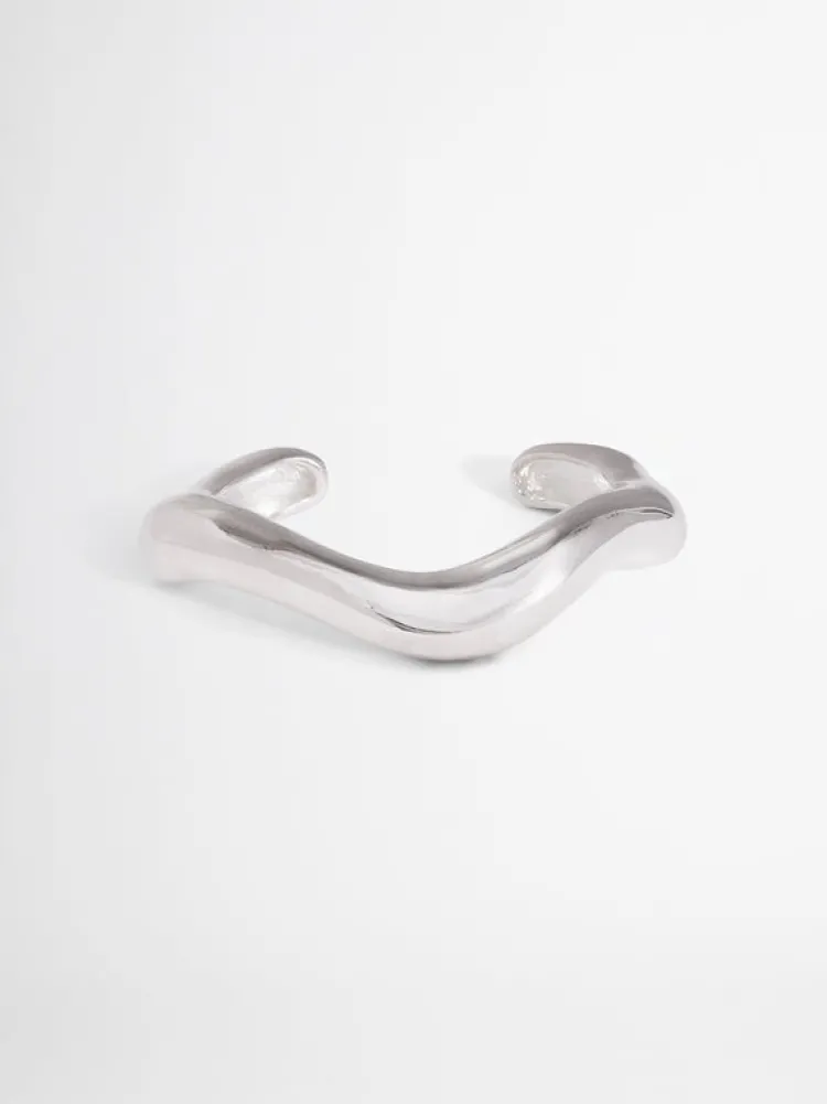 A Take On A Classic. Introducing The Sculptural Bangle – A Wavy Metal Cuff In Silver Hardware.