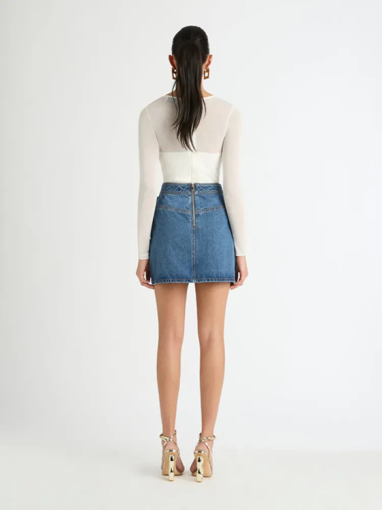 Effortless Styling With Timeless Detailing. Introducing The Madison Knit Bodysuit, A Knit Staple Piece To Take You From Desk To Dusk. Showcasing A Sheer Bodice With Opaque Bust And Back And Hook And Eye Crotch Closure. Pair With Our Republic Denim Skirt And Evelyn Earrings To Complete The Look.