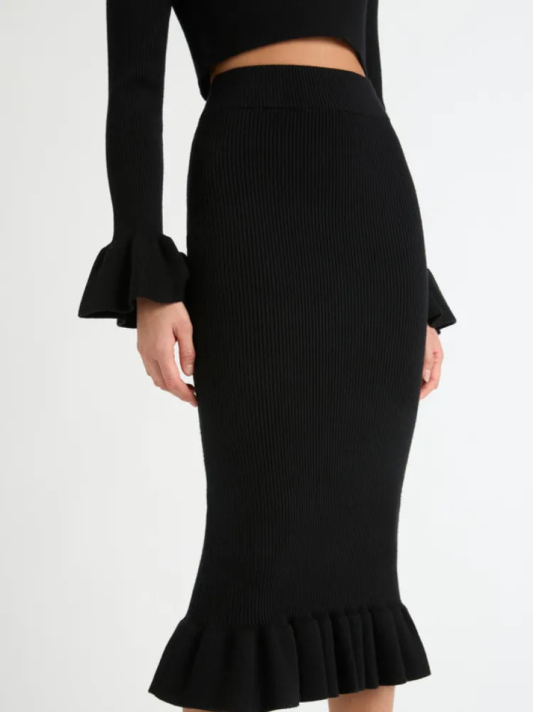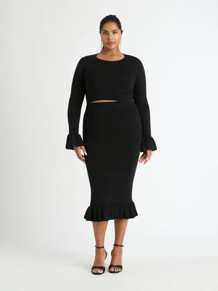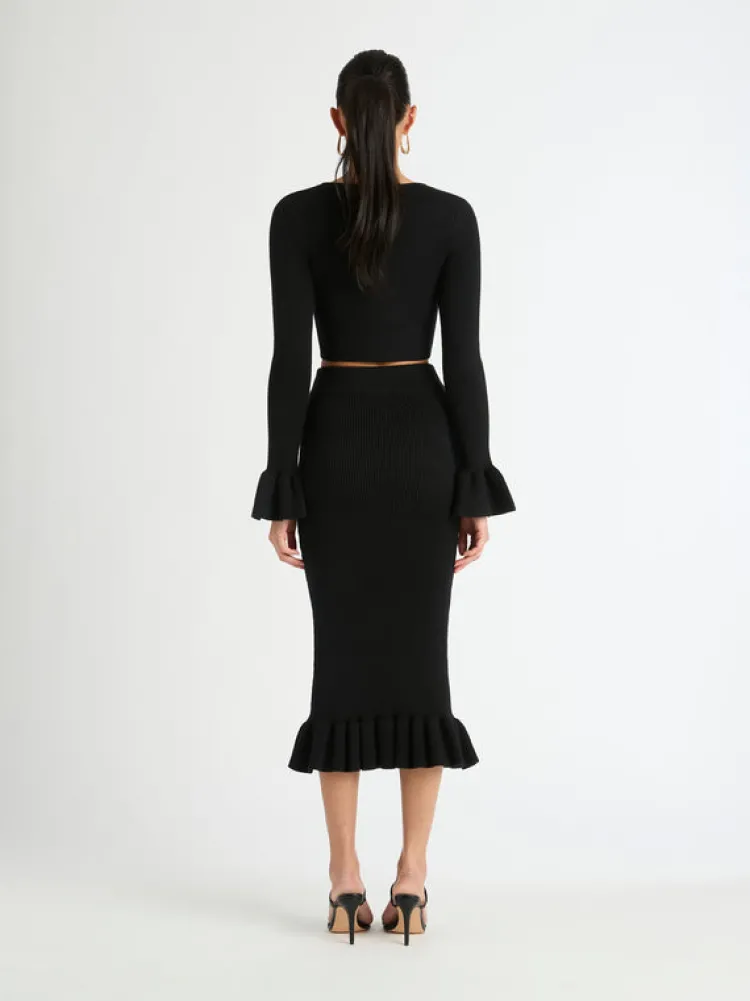 A Timeless Midi Knit Skirt Set To Be A Staple This Season. Introducing The Olivia Knit Skirt, Showcasing A Fitted Cut, Elasticated Waist And Ruffle Hem Detailing. Pair With Our Matching Olivia Knit Top And Harper Earrings To Complete The Look.