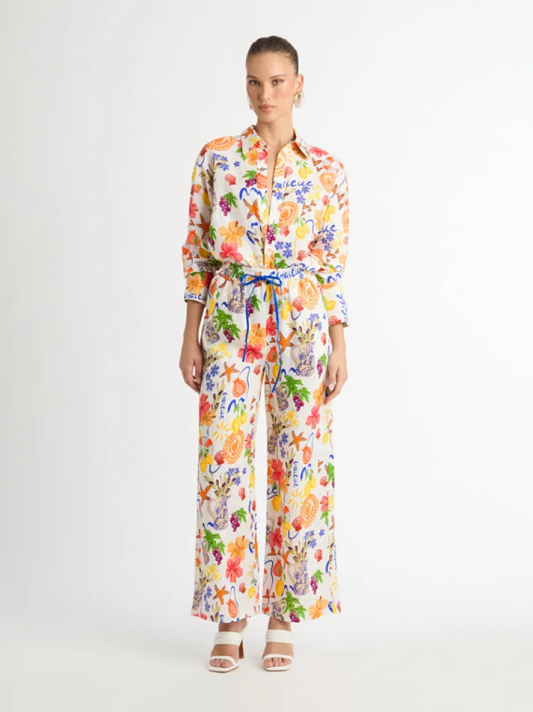 Enter A World Of Bold Colour Ways And Whimsical Prints. Introducing The Summer Armour Linen Pant – Featuring A Relaxed Fit, Wide Leg Pant, Elasticated Waist And Side Seam Pockets. Pair With Our Matching Summer Amour Shirt To Complete The Look.