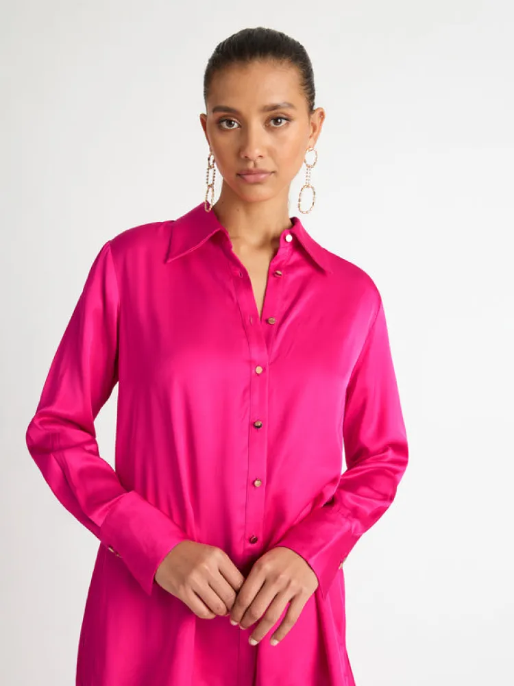 Own Any Room In Our Bold And Elegant Audrey Shirt. Showcasing A Luxe Satin Fabric, Relaxed Cut And Front Placket Button …