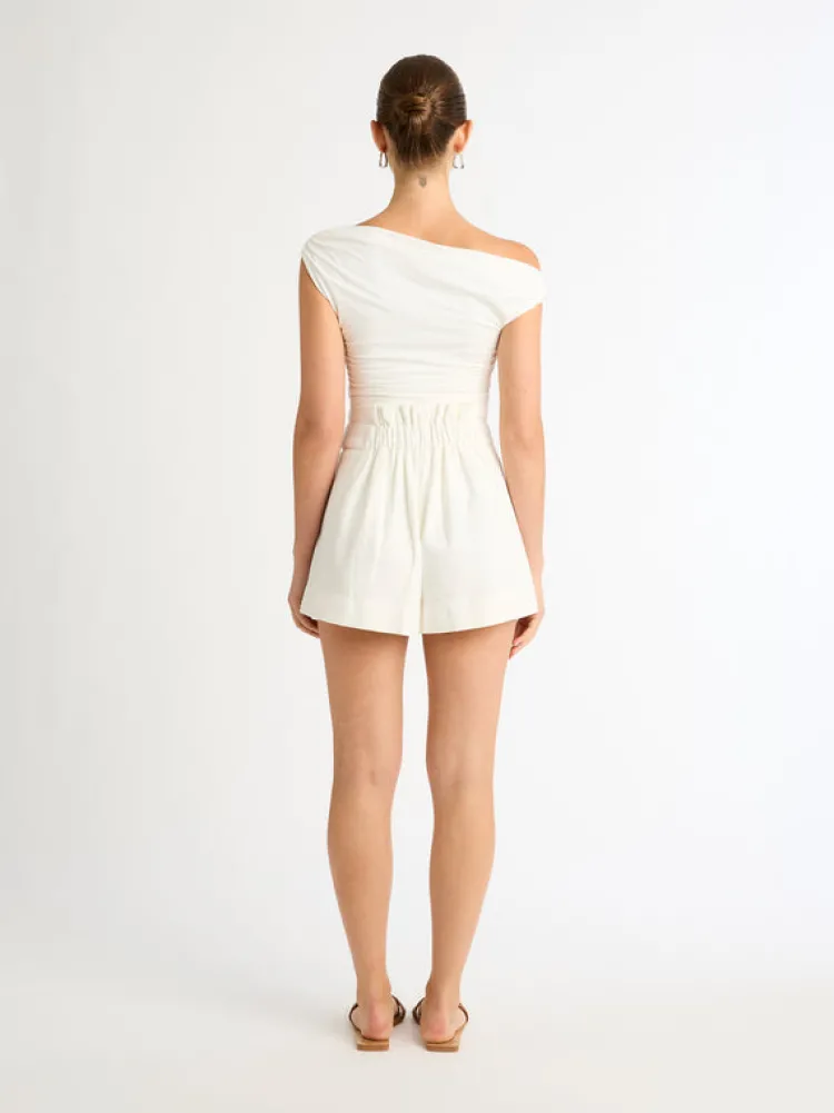 Our Denim Shorts Are Here And They Are A Wardrobe Must Have This Season! Featuring 100% Denim Cotton Fabric, High Paper-Bag Waist And Functional Side Pockets. Pair With Our Calista Bodysuit And Rashida Earrings To Complete The Look.