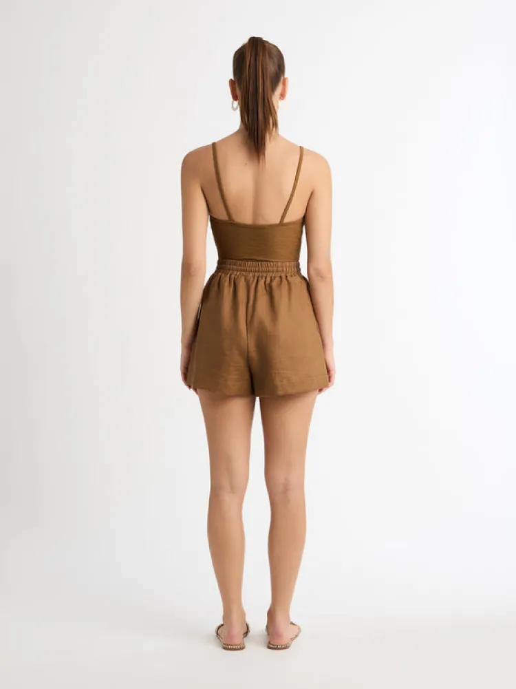 Introducing The Eivissa Linen Short – Showcasing A Relaxed Fit, Elasticated Waist With Functional Draw Strings And Side Seam Pockets. Pair With Our Paros Swimsuit And Matching Leo Linen Shirt To Complete The Look.