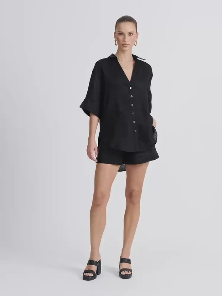 Introducing The Leo Linen Short – Showcasing A Relaxed Fit, Elasticated Waist With Functional Draw Strings And Side Seam Pockets. Pair With Our Matching Leo Linen Shirt And Portofino Earrings To Complete The Look.