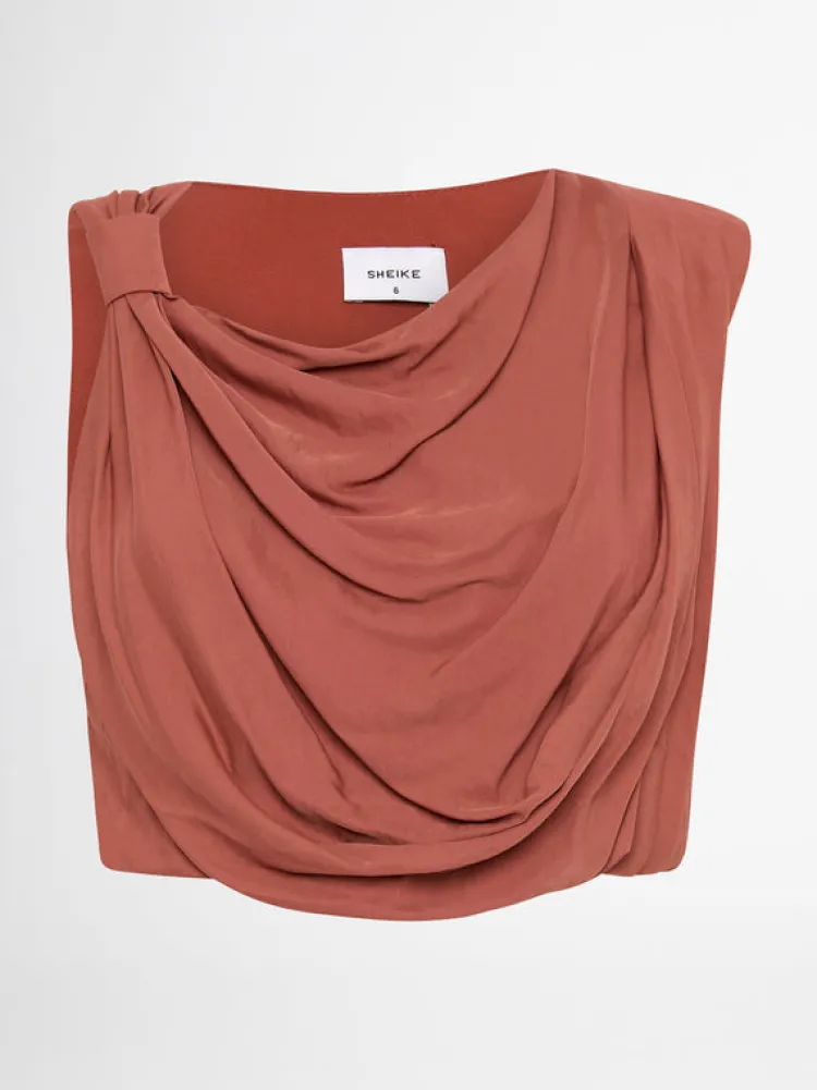 Romantic Silhouettes And Ultra Feminine Tailoring Brings The Ezra Top To Life. Showcasing A Decadent Draped Cowl Neck, Elasticated Hem And A One Shoulder Cut With Band Detailing. Pair With Our Matching Ezra Skirt And Halo Earrings To Complete The Look.