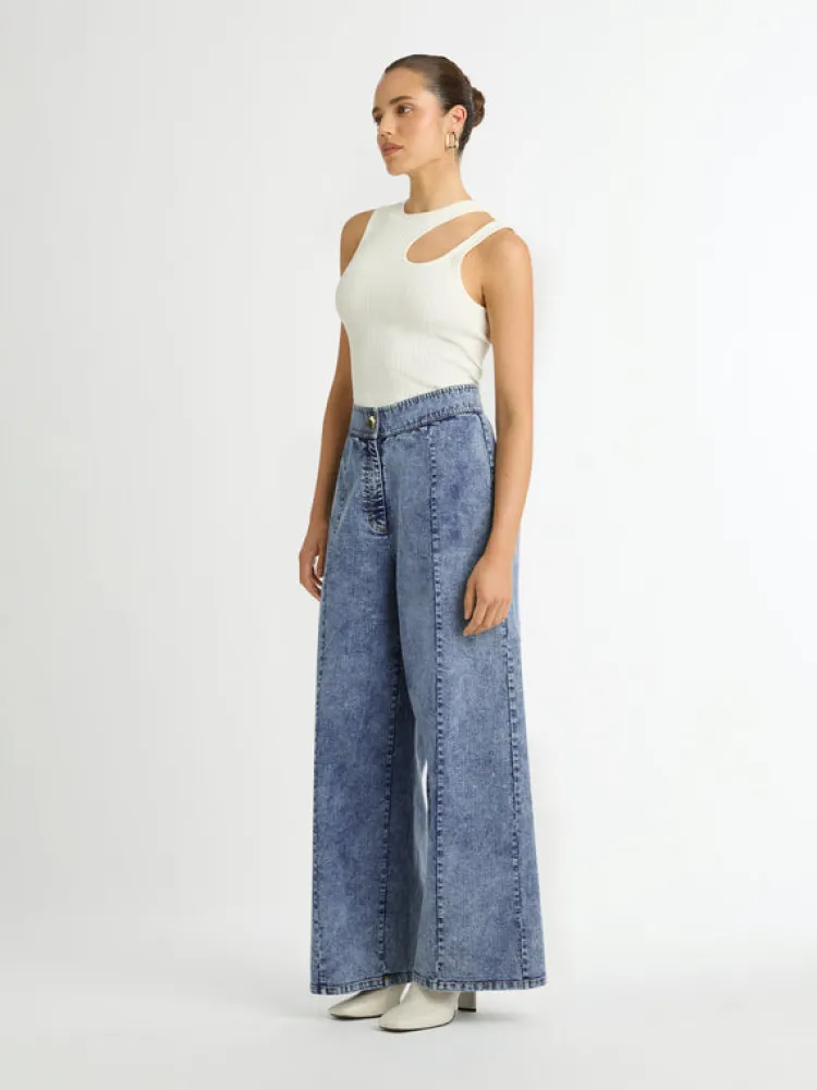 A Cami Fit For The Season – Introducing Our Camille Top Featuring A Ribbed Knit Fabrication, Fitted Styling, High Neckline With Cutout Detailing On The Left Shoulder And Binding On The Hem. Pair With Our Beaumont Jean To Complete The Look.