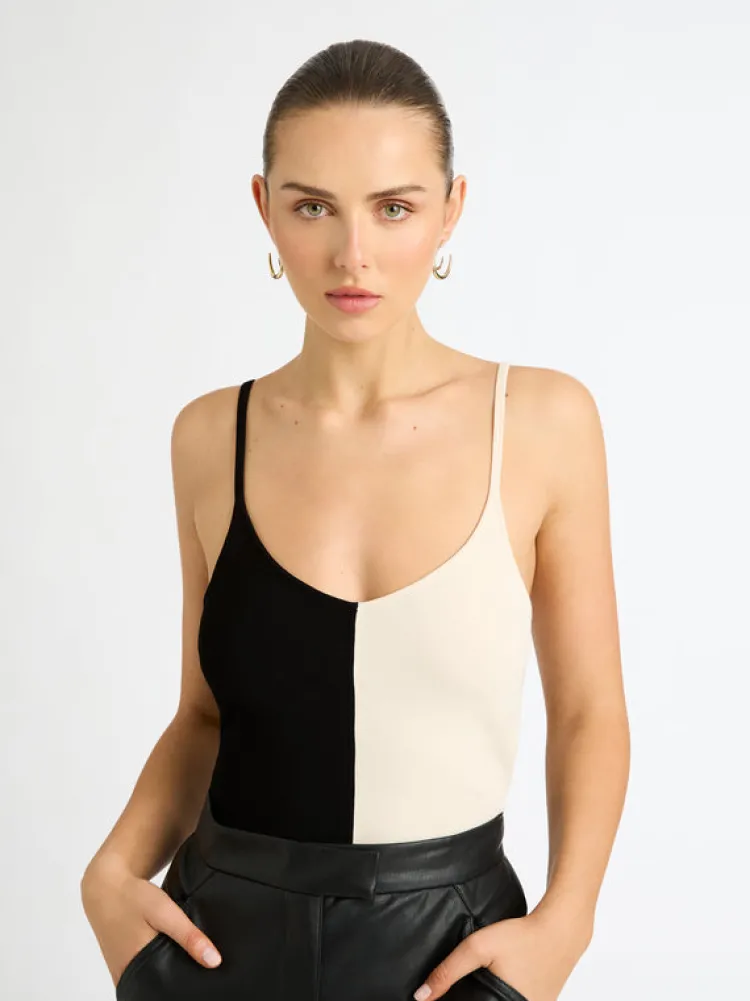 No Wardrobe Is Complete Without Our Crossroads Knit Top- Featuring A True Knit Fabrication, V Neckline With Thin Straps, Two Toned Knit And Fitted Styling. Pair Back With Our Jamie Pant And Amalita Earrings For A Monochrome Look.