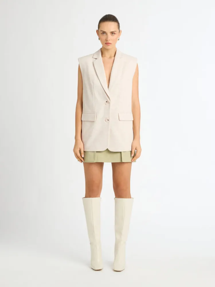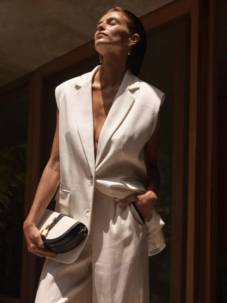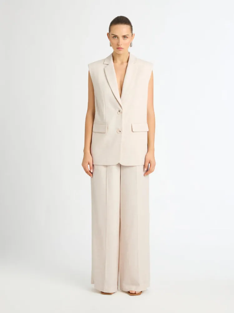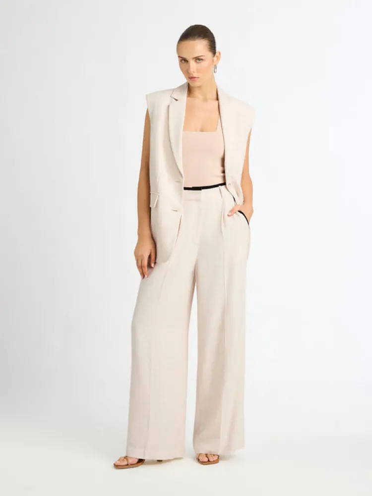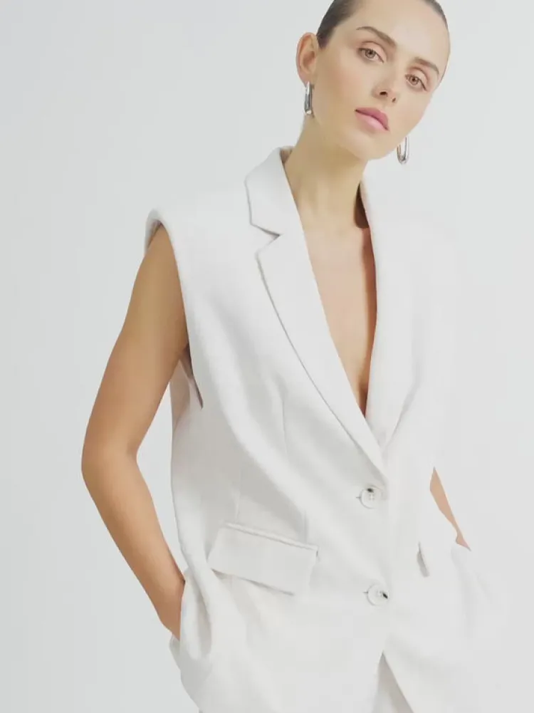 A Captivating Blend Of Clean Tailoring And Crisp Neutral Tones. Introducing Our Crossroads Vest – Featuring A Woven Linen Blend Fabrication, Relaxed Oversized Fit, Shoulder Pads, Collar With Lapel And Front Welt Pockets. Pair Back With Our Crossroads Pants To Complete Your Look.