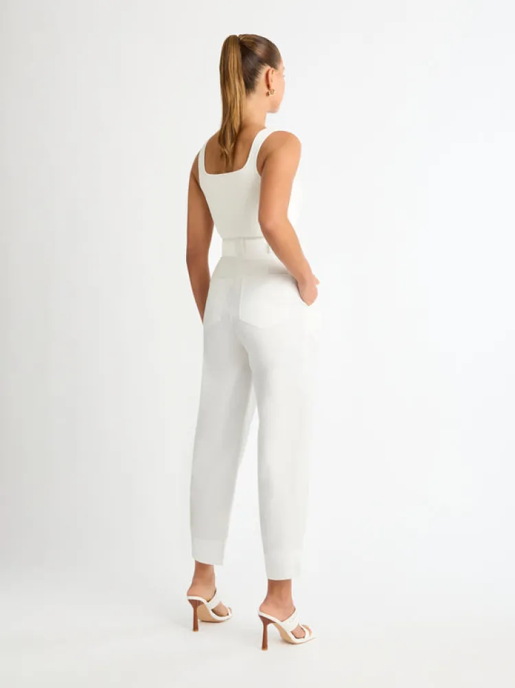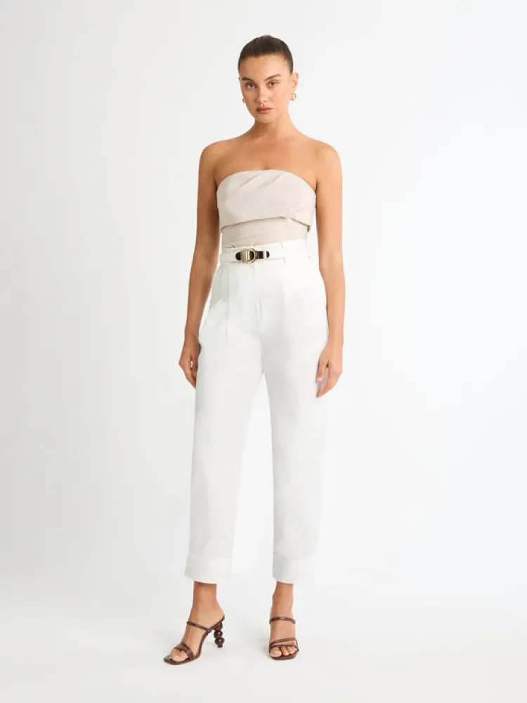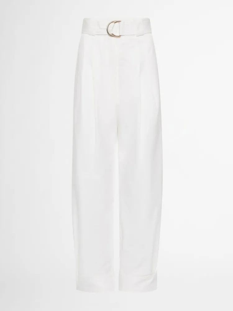 Contemporary Lines And An Alluring Structed Fit Makes The Diego Pant Stand Out From The Rest. Showcasing Fitted And Relaxed Styling, Fixed High Waist With Large Belt Loops, A Self Fabric D Ring Belt With Stitching Design, Side Front And Back Pockets And Tapered Pant Leg With Rolled Hem. Pair With Our Allure Linen Shirt To Complete The Look.