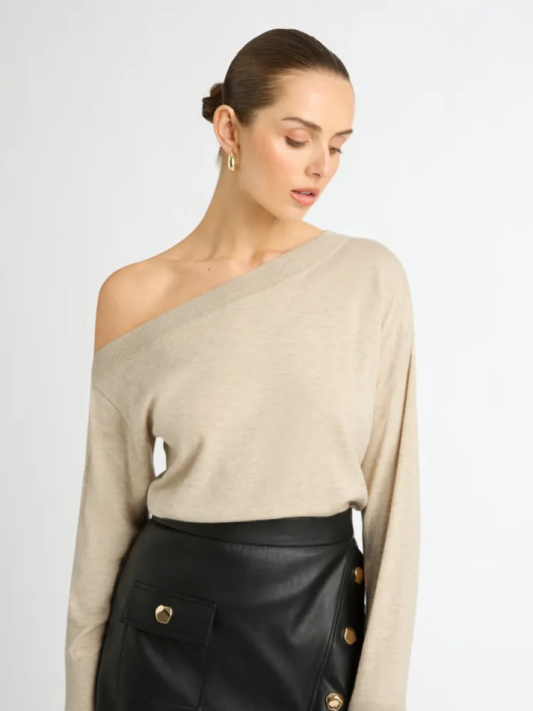 Elevate Your Wardrobe With The Evie Knit Top, A Perfect Blend Of Comfort And Style. Featuring A True Knit Wool Blend Fabrication, Relaxed Styling, Off The Shoulder Neckline And Long Sleeves With Ribbing At The Cuff. Pair With Our Dillon Skirt To Complete The Look.