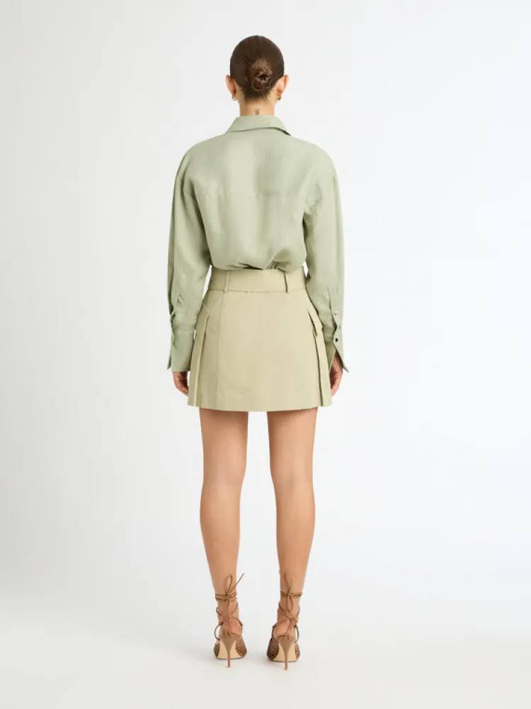 Neutral Tailoring For The Modern Woman. Introducing The Ivy Mini Skirt – Featuring A Silk Blended Fabrication, Fitted And Relaxed Styling, Fully Lined, Fixed Waist, Front Fly Closure With Press Stud, Large Side Patch Pockets And Self Fabric Sash Belt With Belt Loopers. Pair Back With Our Coastal Linen Shirt Or Matching Ivy Blazer For A Stunning Fit.