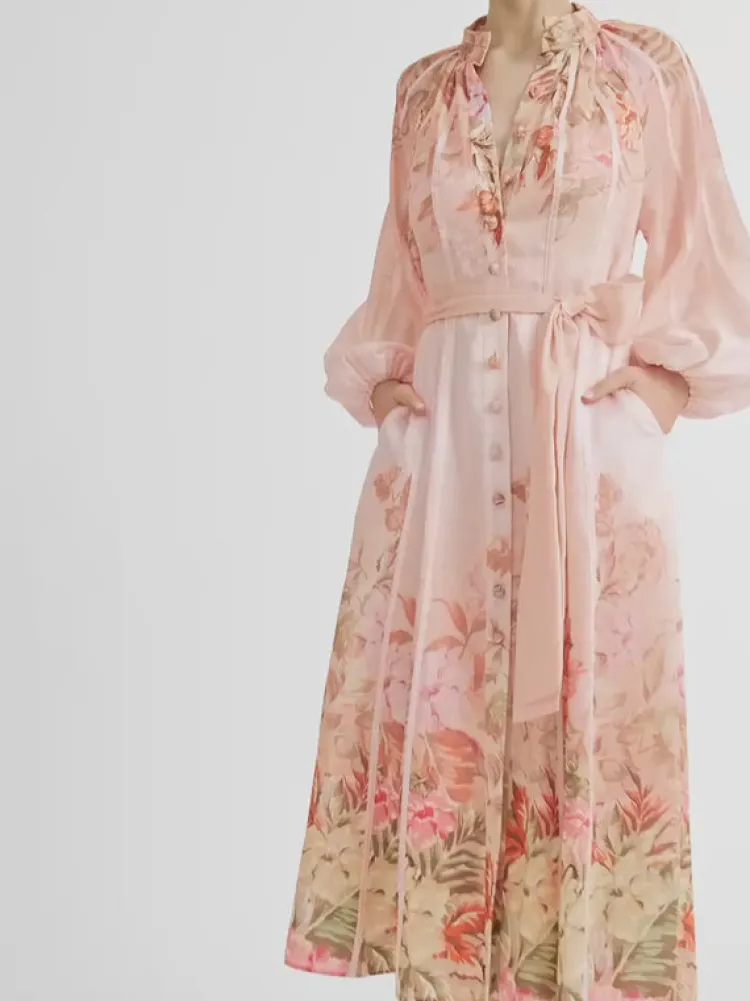 Enter A World Of Floral Pink Tones! Introducing The Mahalo Maxi Dress, A Floral Printed Maxi Dress Showcasing A Tencel Linen Blend Fabrication, Relaxed Styling, Front Button Placket With Self Fabric Covered Buttons, Sash Belt, Balloon Style Raglan Sleeves And Maxi Skirt Length. Pair With Our Loren Earrings To Complete The Look.