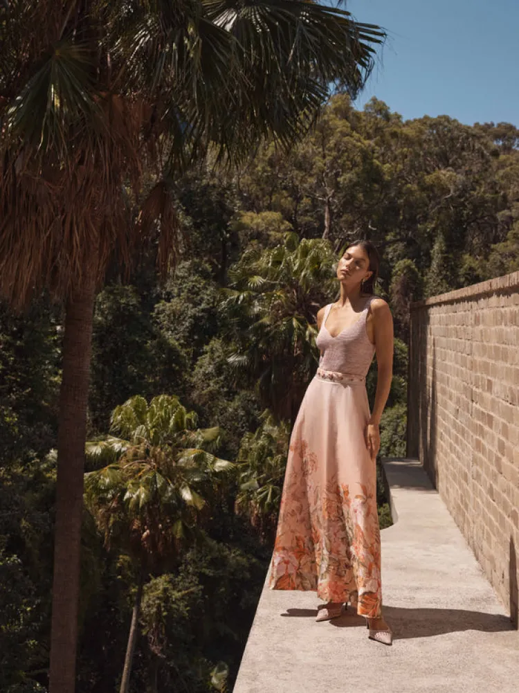 Enter A World Of Floral Pink Tones! Introducing The Mahalo Maxi Skirt, A Floral Printed Maxi Skirt Showcasing A Tencel Linen Blend Fabrication, Fixed Waist With Self Fabric Detailing And Full Length A Line Cut. Pair With Our Georgia Knit Top To Complete The Look.