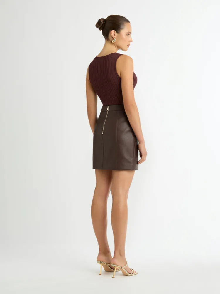 A Skirt Up For The Challenge To Be Your New Staple. Introducing Our Rival Mini Skirt – Featuring A Faux Leather Fabrication, Fixed Waistband, Mini Skirt Length And Exposed Metal Back Zipper. Pair Back With Our Byron Knit Top And Manhattan Earrings For A Desk To Dinner Look.