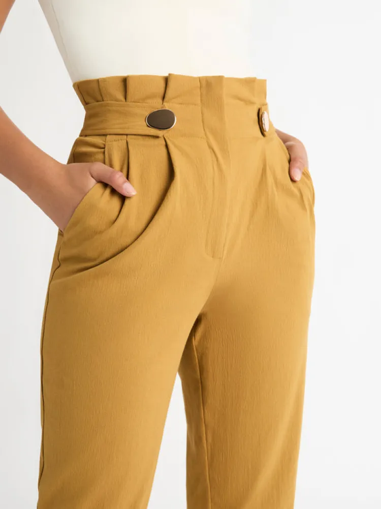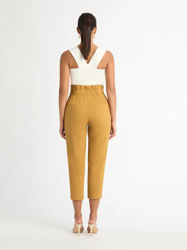 Our Sandstorm Pants Are Here And They Are A Wardrobe Must Have This Season! Featuring Midweight Cotton Fabric, High Paper-Bag Waist With Half Back Elasticated Waistband And Functional Side Pockets. Pair With Our Amalfi Longline Knit And Serenity Earrings To Complete The Look.