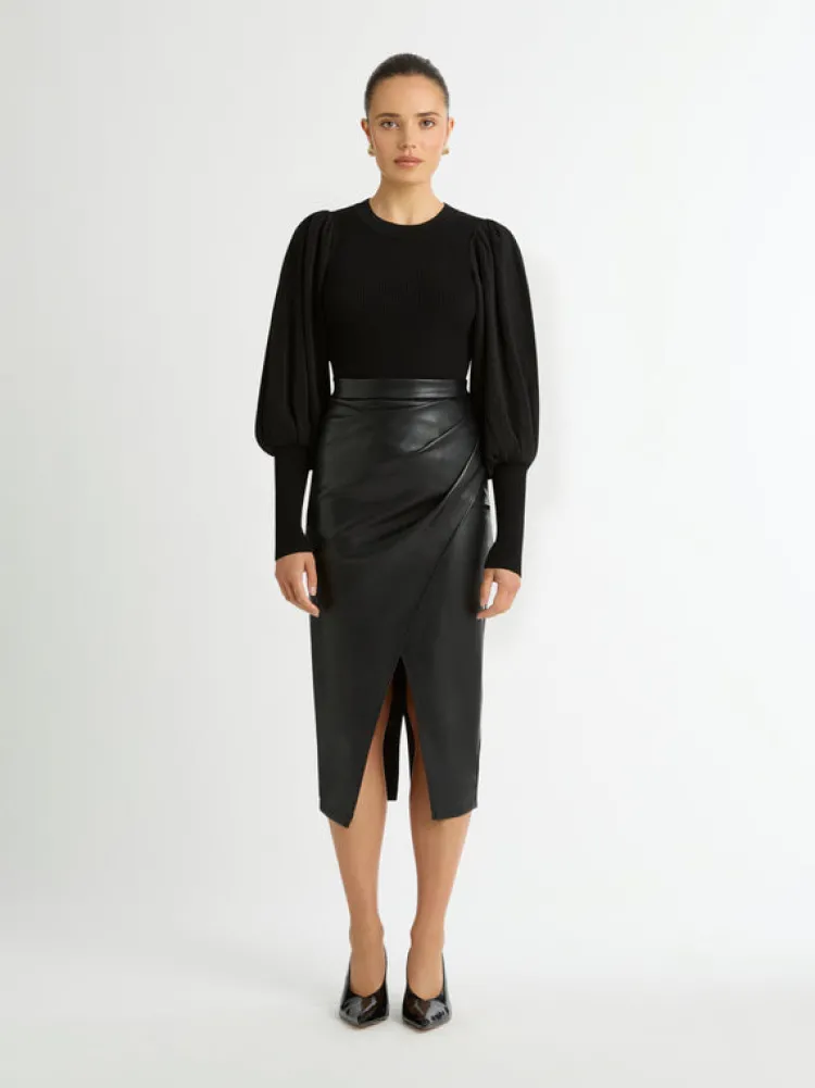Step Out In Detail With An Impact Sleeve. Introducing Our Toronto Knit Top – Featuring A Main Body In Ribbed Knit Stretch Fabrication, Balloon Sleeves In Contrast Textured Jersey, Fitted Bodice, High Neckline And Elongated Ribbed Cuffs. Pair Back With Our Gotham Skirt To Complete The Look.