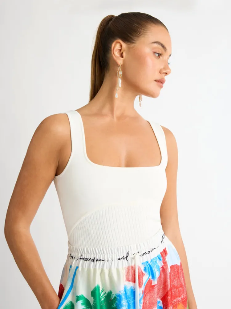 Our Uma Top Is The Must Have Knit Top Of This Season. – Featuring A True Stretch Knit Fabrication, Soft Square Neckline, Empire Bustline And Ribbing Knit At Bodice. Pair Back With Our Rio Skirt For The Look Of The Season.